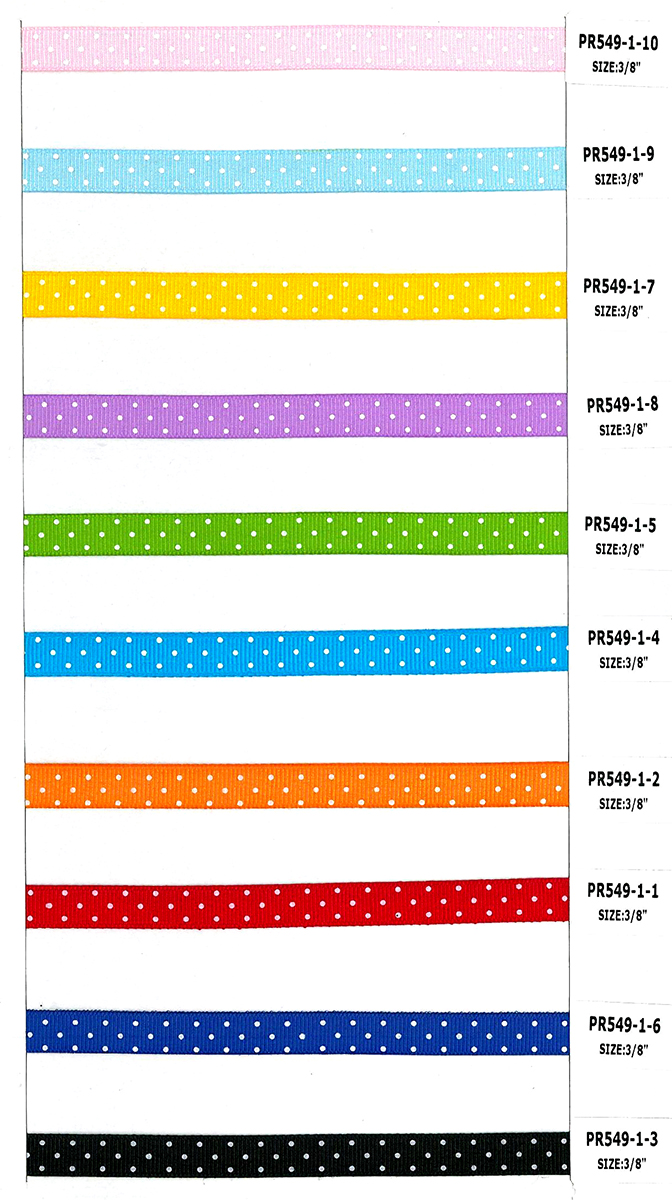 Το απλό κορδόνι ταφτάς με πλάτος 5/8 ιντσών διαθέτει εκτύπωση με λευκά πουά πάνω του. Αυτή τη στιγμή είναι διαθέσιμο σε 12 επιλογές χρωμάτων. Μπορούν να οργανωθούν προσαρμοσμένα ή χρώματα Pantone. Αυτός ο απλός και χαριτωμένος σχεδιασμός είναι ιδανικός για τη συσκευασία δώρων, την κατασκευή, τη διακόσμηση, το scrapbooking, τα τσιμπιδάκια μαλλιών, τα δωράκια για πάρτι, τη ραπτική, τη διακόσμηση του σπιτιού και όλες τις διακοσμήσεις.