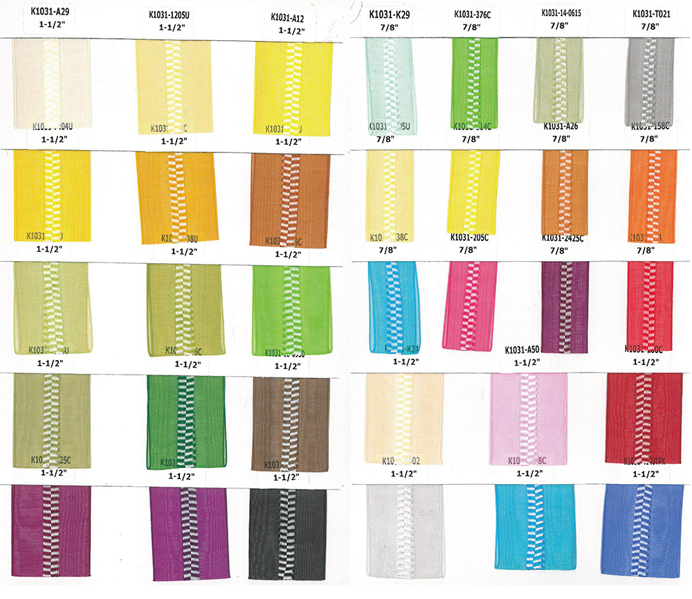 If you need something to add a touch of elegance, you must not miss this ribbon! This is a 1-1/2 inch polyester organza sheer ribbon that has ruffled edge and satin in the center. It is reversible and available in light, soft colors such as ivory, baby blue, pink, mint, pale yellow as well as strong colors like red, purple, blue, fuchsia etc.. We can also match your custom colors or Pantone colors. Quality assured. Color cards are available upon request.