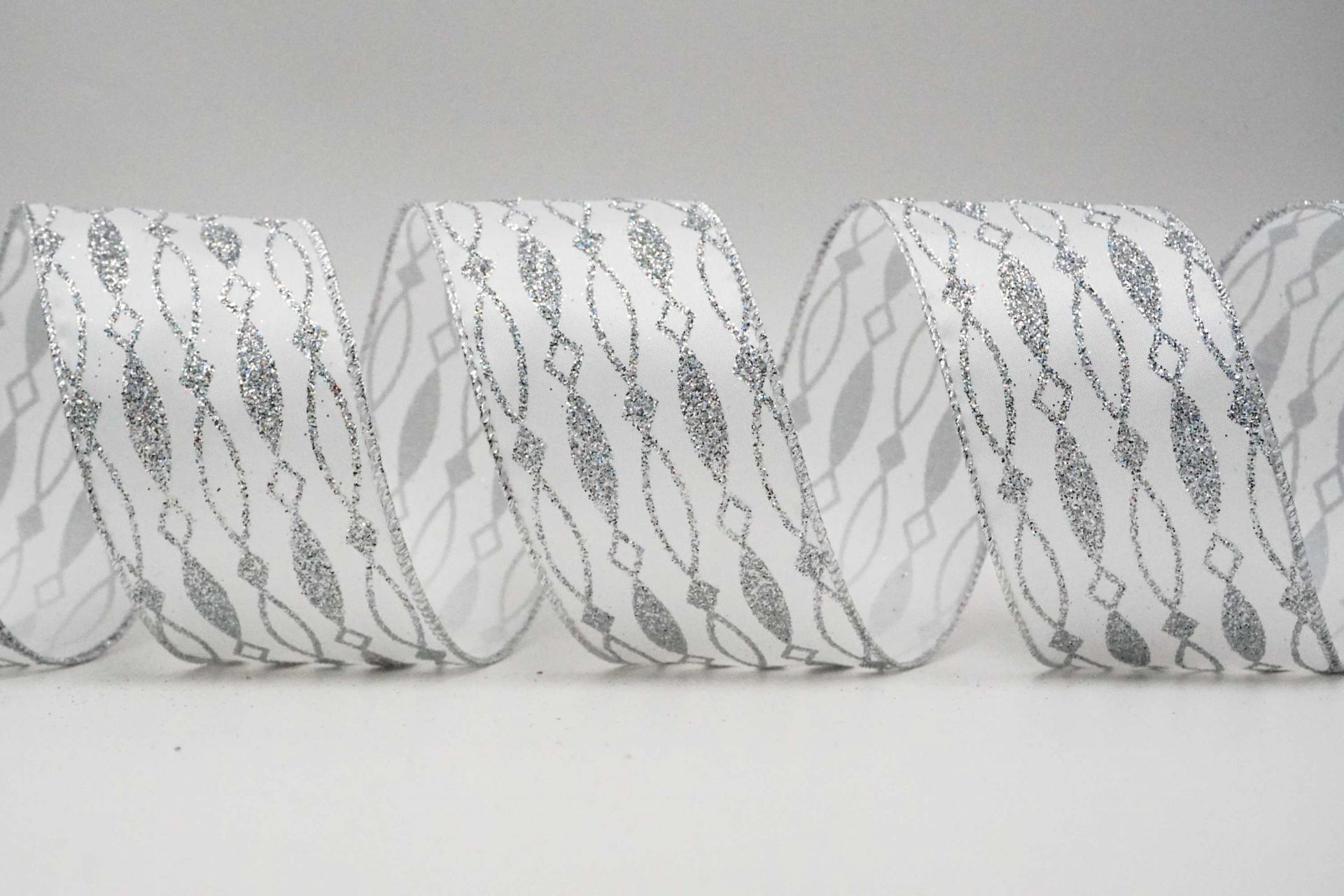 The Glittery Argyle Ribbon is cut from taffeta fabric; it can be cut into any width as you wish. There are wires sewn on edges and there it can be tied as bows to put your Christmas décor to a higher level.