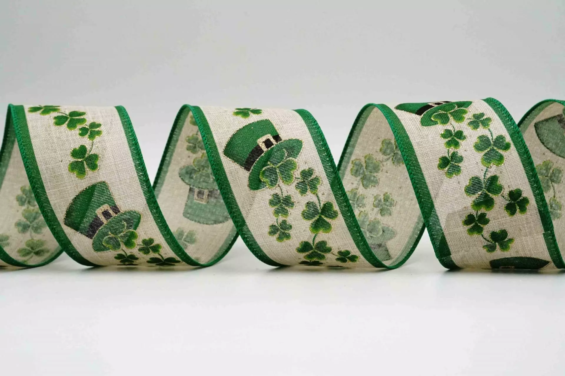 This St. Patrick’s Day ribbon features hats with black and gold belt. Like magicians pulling rabbits from their hats, these hats are also magical as there are three-leave clovers keep coming out from it. There are gold glitters sprinkled on the clovers design which sparkles festive joy.