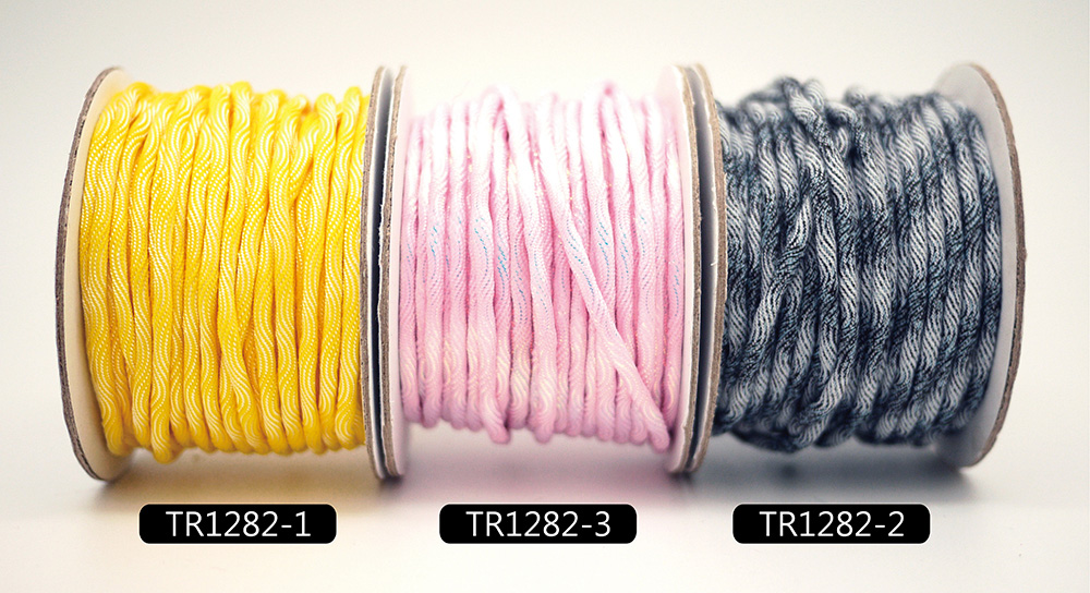 This 3mm cord features an “S” like wavy pattern longitudinally. It comes in 3 colors and each is made with different materials. The yellow is made of polyester, the black & white is cotton, and the pink is iridescent metallic yarn. It’s ideal for gift bags as a handle, scrapbooking, craft projects, sewing, floral arrangements, party favors and more.
