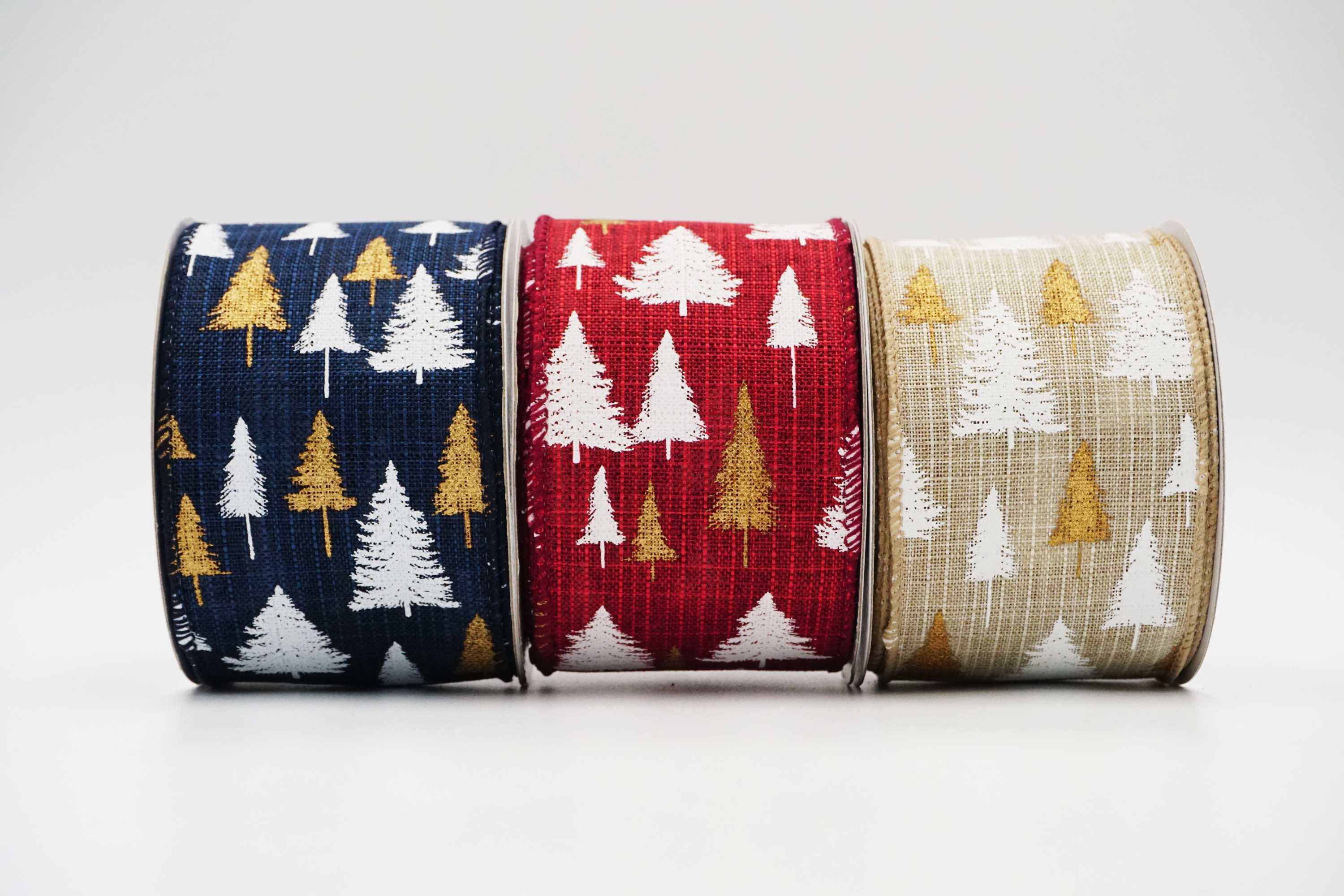 Nuestra serie de cintas para árboles de Navidad está disponible en tamaños de 2-1/2 pulgadas. Tiene 3 opciones de tela y varios colores para ofrecer. Todas están cosidas con bordes alambrados a juego en cada lado, lo que ayudará a que la cinta y su lazo mantengan su forma.