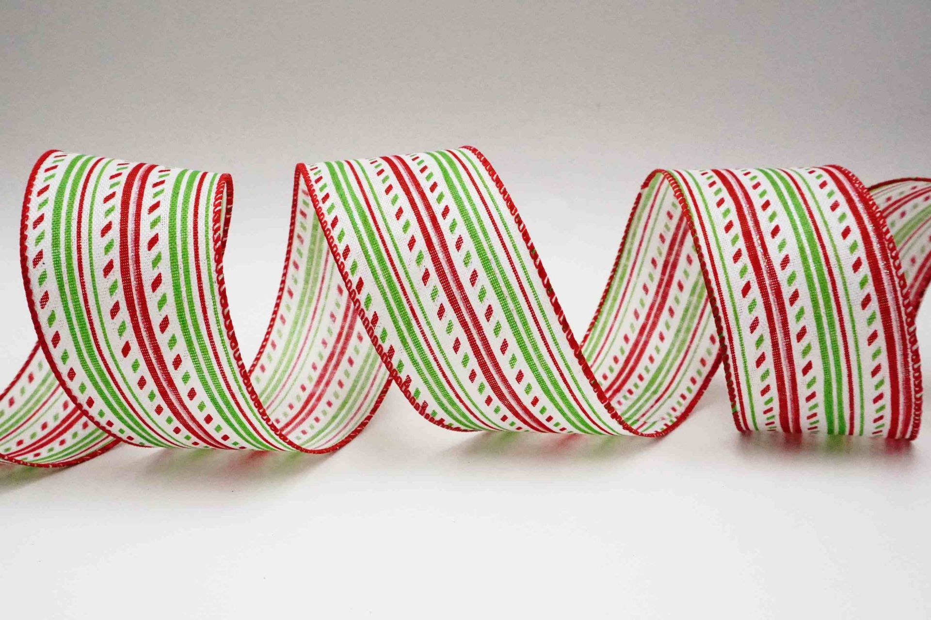 Il nastro a strisce festive è largo 2,5". I bordi sono tagliati e cuciti con fili contenuti all'interno. Pertanto, possono essere piegati in qualsiasi forma e mantenerli facilmente.