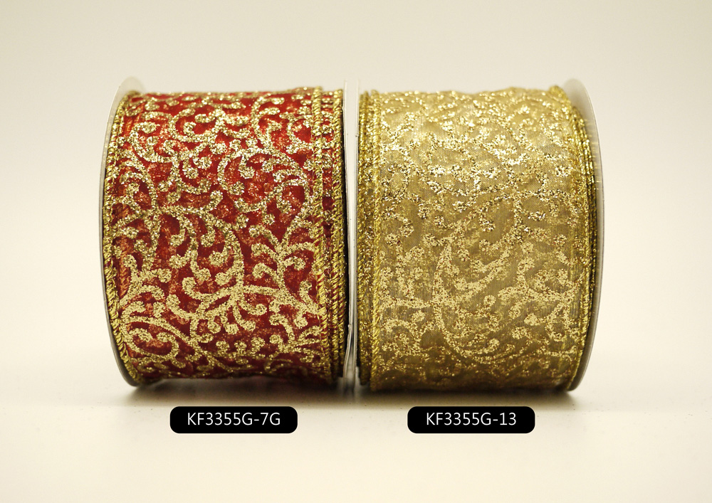 ゴールドビンズのデザインがオーガンザリボンに印刷されています