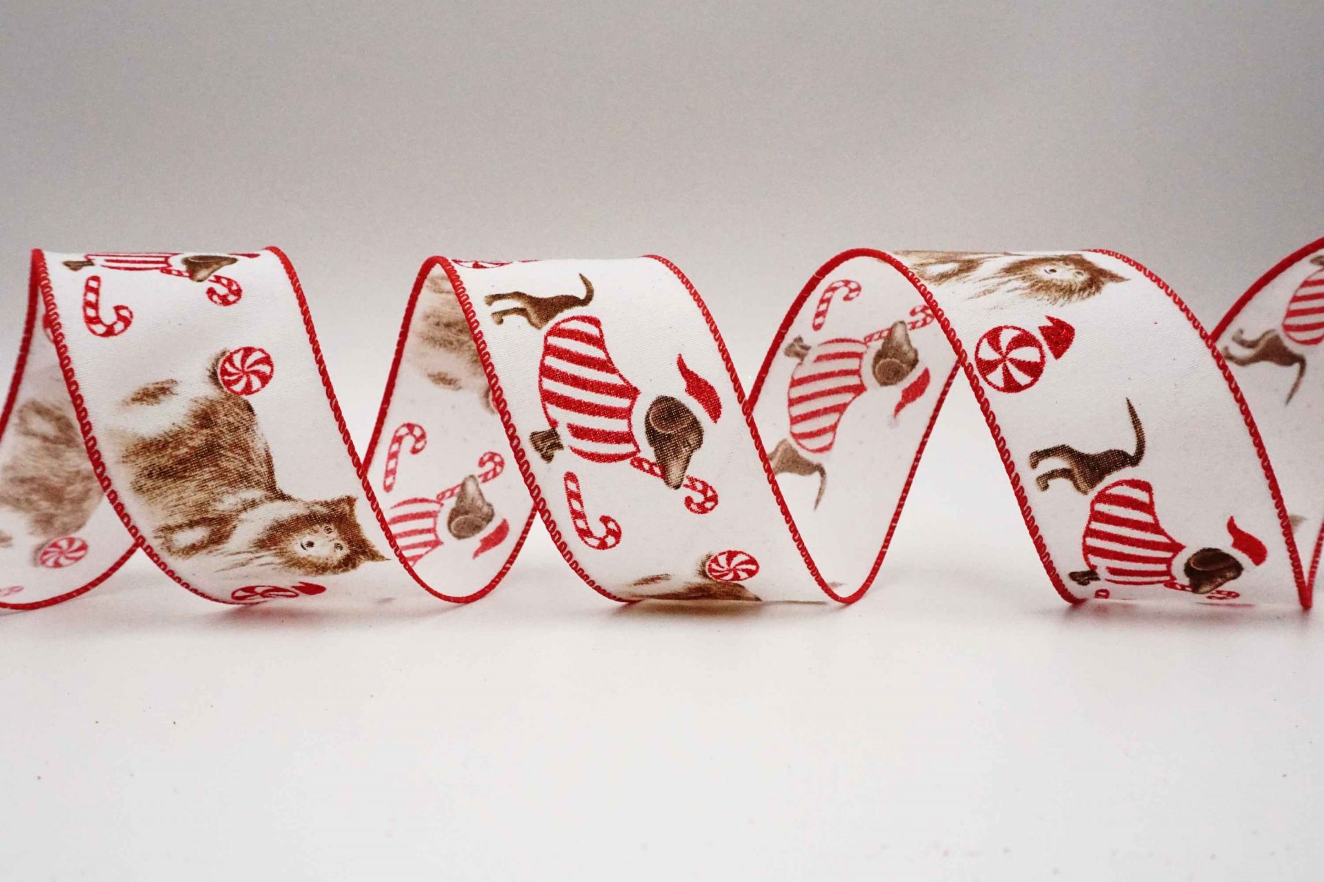 Canes rubri et albi ex aspectu eorum fusci maxime emineant, praesertim quia in eis pulvis ruber impressus est. Catalogus ex taffeta crassa in latitudinem 2.5” specificam excisus est. Margines etiam filo coniuncto matto et filo coniuncto, ideo ut accedant ad animalia tua ut spiritum festivum ostendant!