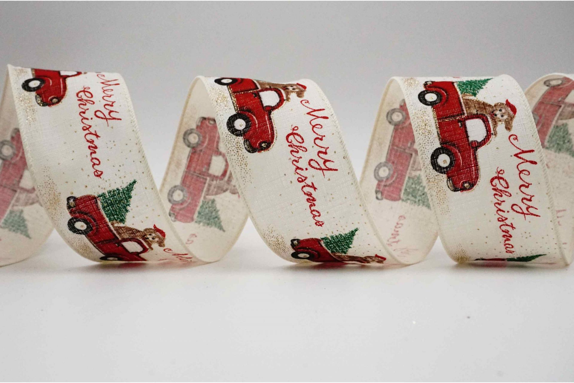 Эта лента имеет винтажный вид с изображением красного грузовика с елкой на заднем плане на фальшивой джутовой ткани. Слова «С Рождеством» написаны красным цветом между красными грузовиками. Весь дизайн имеет фон снегопада, и деревья тоже покрыты снегом. Красная лента из искусственного джута с изображением грузовика и елки имеет проволочные края, завершенные матовой нитью, соответствующей светлому оттенку, и смешанной металлической золотой и серебряной нитью для темного оттенка, чтобы помочь ленте сохранить свою форму. Эта лента доступна в определенной ширине 2-1/2 дюйма и двух цветах ленты. Это еще одна незаменимая лента этого сезона для ваших рождественских украшений. Добавьте винтажный праздничный штрих к вашим рождественским украшениям, дому, подарочной упаковке, рождественской елке, бантам, венкам и многому другому с этой лентой с рождественской елкой в виде красного грузовика!