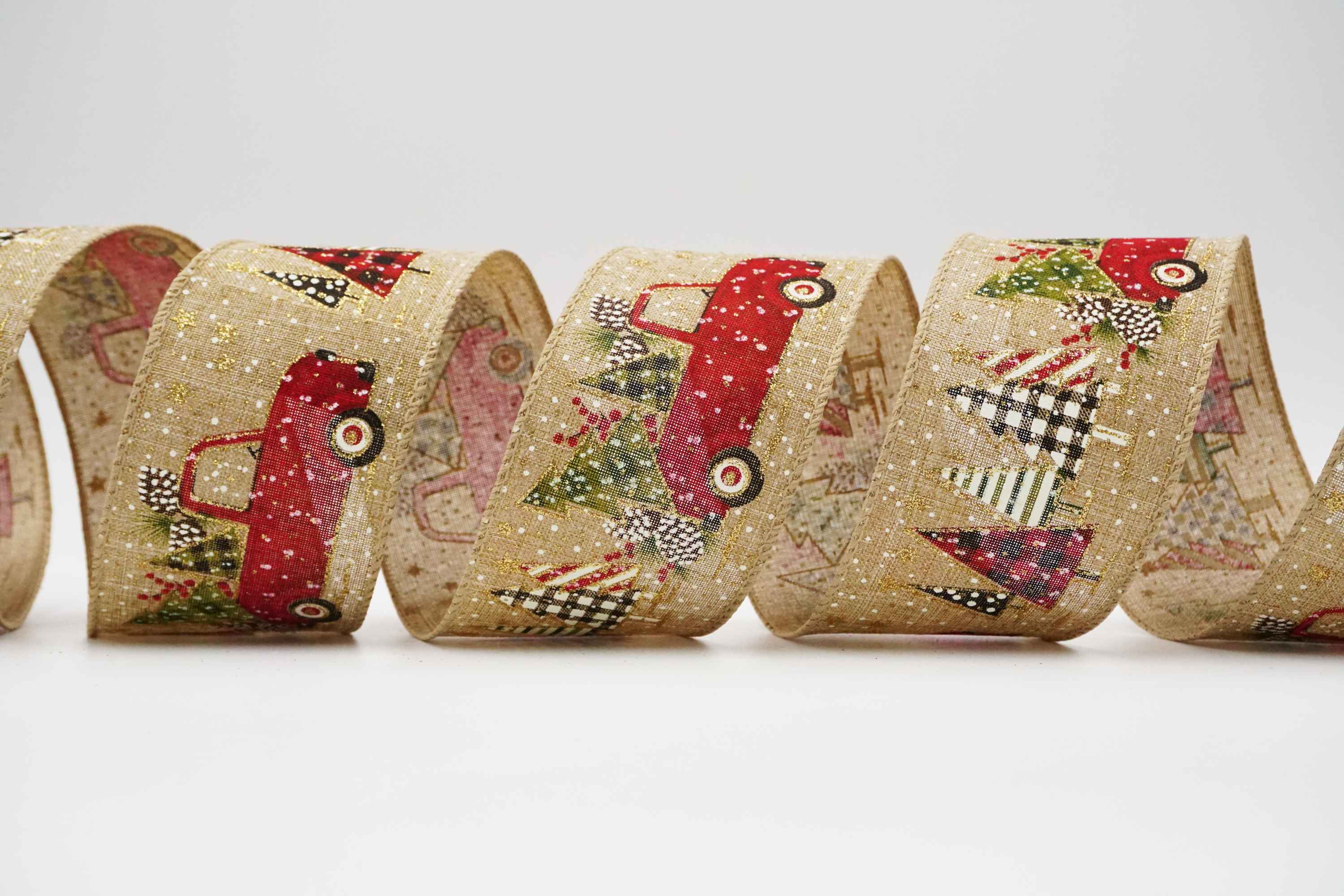 Червоні вінтажні вантажівки, дерева з подарунками стрічка_KF6679G-2_Бежевий