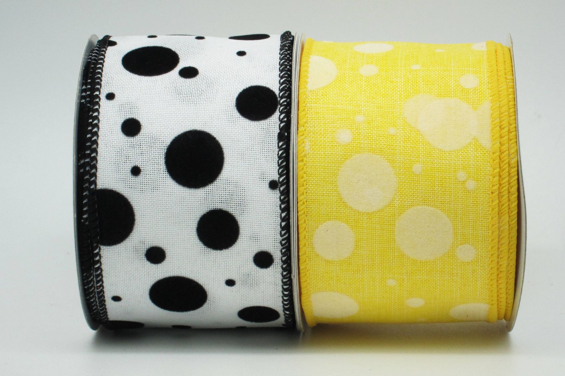 圆点缎带永远都是不退流行款!此款在圆点材质上特别选用了带有天鹅绒般的质地,充满立体触感,颜色上更是丰富,提供六种颜色可供选择,让您在搭配使用上更能发挥,我们也设计了贴心安全的配置,缎带两侧配上雾面光泽拷克边,铁丝包边缝制,能让缎带变化更多的造型设计,且不易变形损坏. 强烈推荐这条缎带; 适用于婚礼,生日装饰,礼品包装,插花等任何场合.