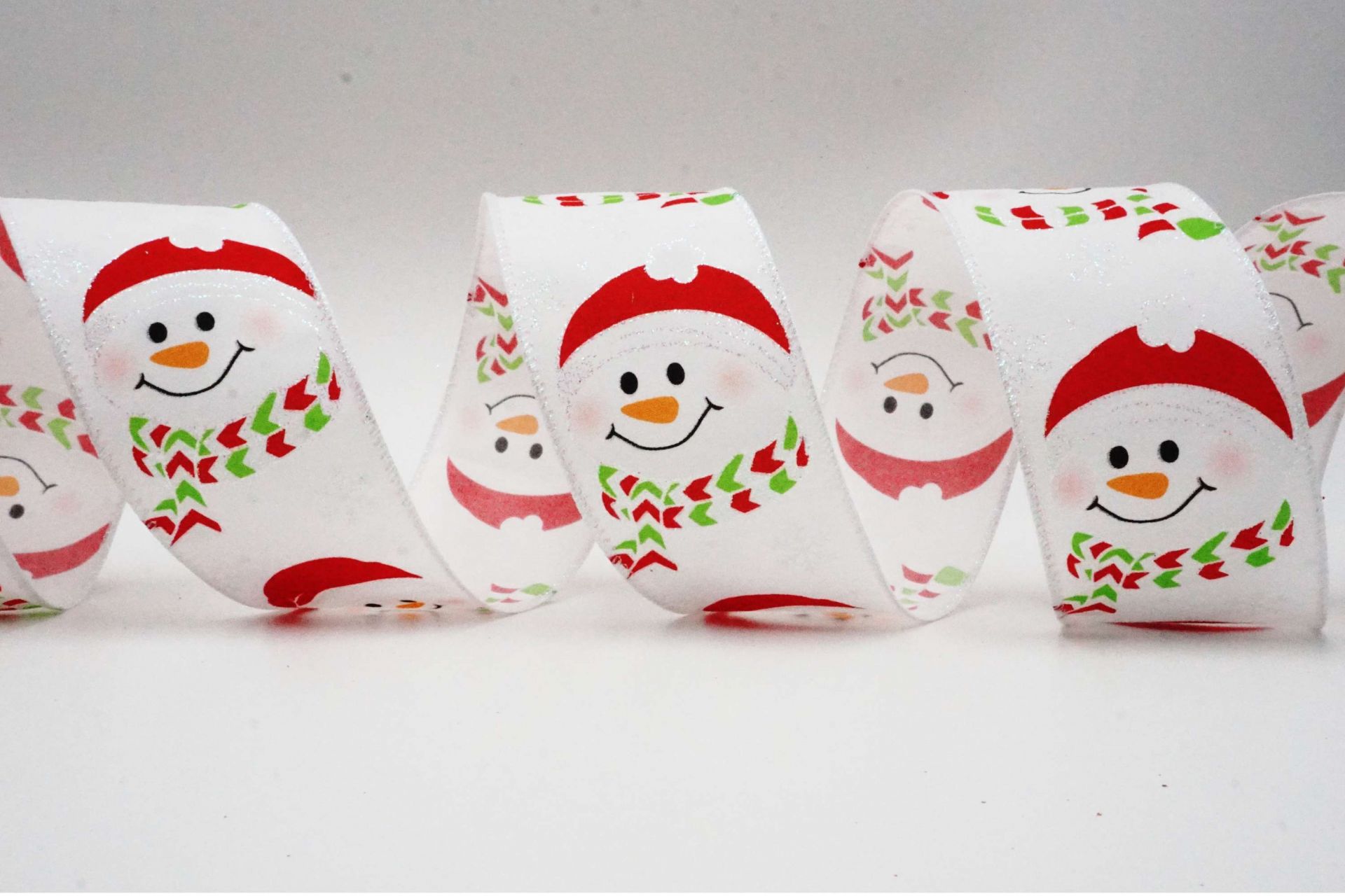 雪人配戴着圣诞帽和围巾,整体的感觉呈现出温暖的氛围,缎带采用了经典的圣诞节色彩,红色,白色和苹果绿.另外还有淡淡的银色和彩虹色的亮葱点缀,为它增添了魔幻的感觉. 缎带两侧配上相对色的雾面光泽拷克边,铁丝包边缝制,能让缎带变化更多的造型设计,不易变形损坏.