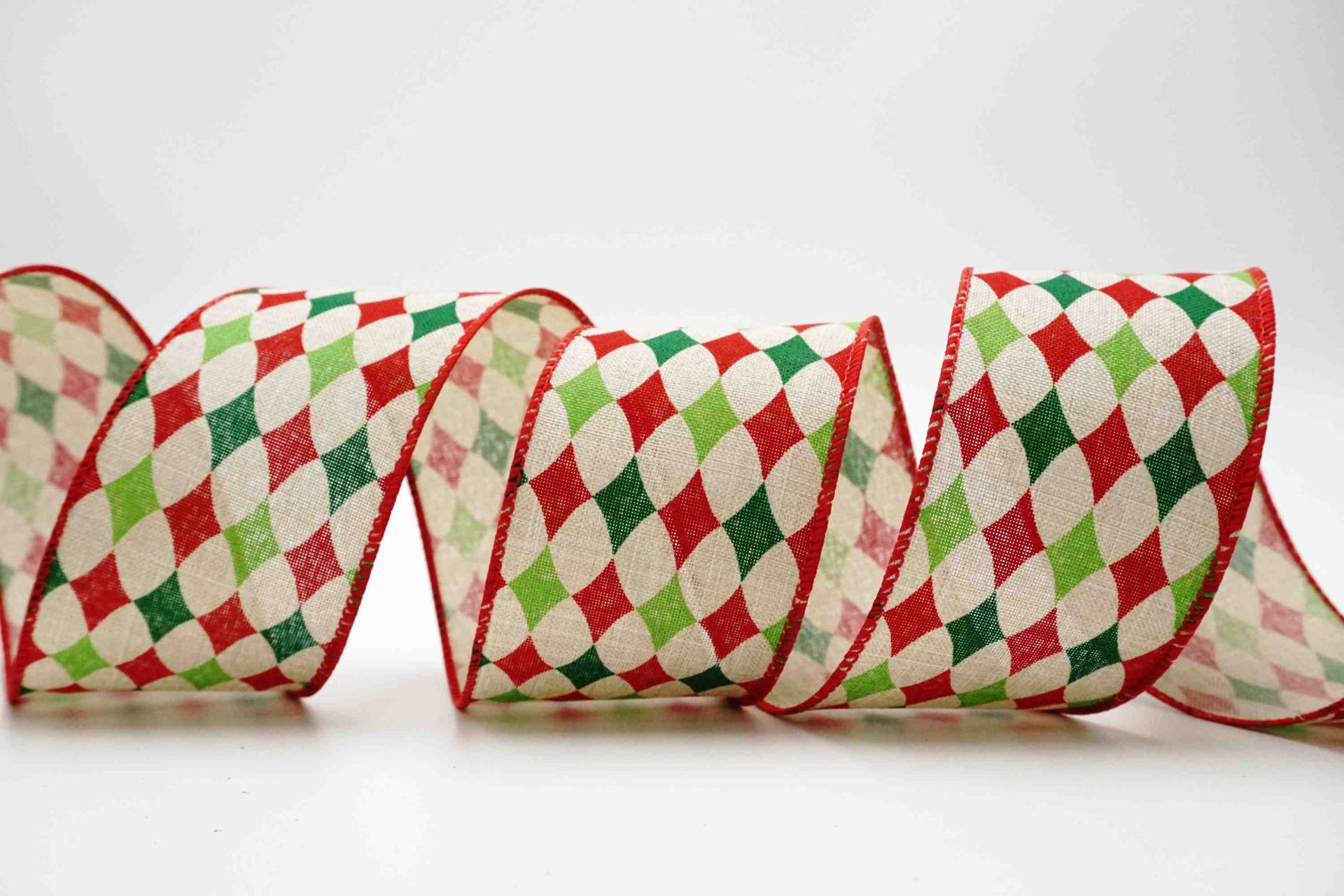此款設計傳統經典卻又帶有濃厚復古風.傳統的聖誕緞帶永遠具有吸引力,布底有有白色和卡其色兩種供選擇搭配.對於家居或派對裝飾而言,它的優點在於緞帶兩側配上霧面光澤拷克邊,鐵絲包邊縫製,能讓緞帶變化更多的造型設計,且不易變形損壞.選擇這款鑽石菱形格紋緞帶來裝飾你的聖誕節!