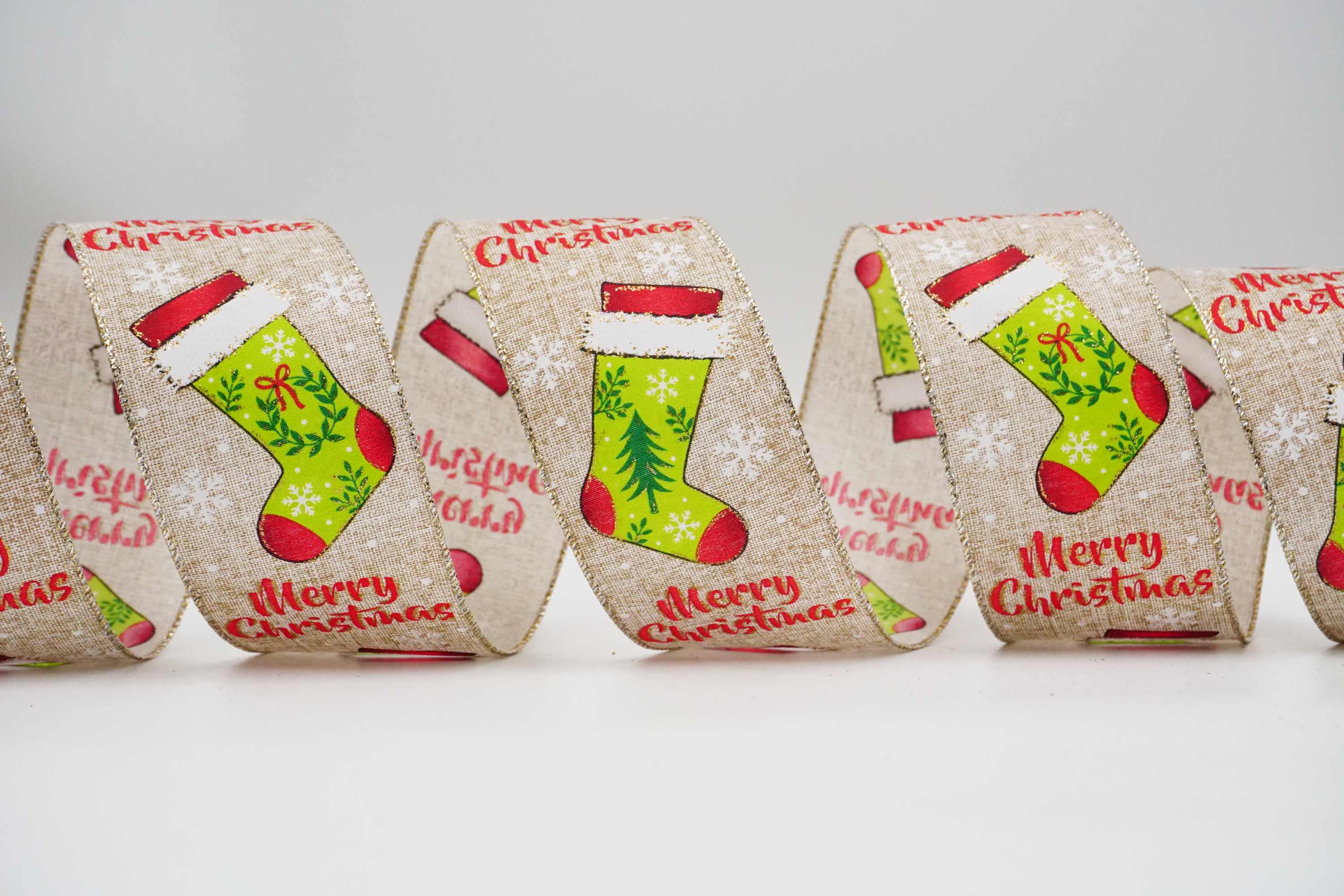الجوارب الكريسماس هي زينة رائعة للعطلة الاحتفالية، تتميز الجوارب الكريسماس الملونة بأنها مملوءة بالثلج والأشجار والثلجات، والأكاليل تلمع باللمعان اللامع. يمكن رؤية عبارة "عيد ميلاد مجيد" مكتوبة باللون الأحمر بين الشريط.
