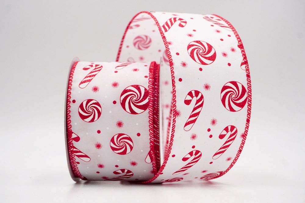 Das Weihnachts-Pfefferminzwirbel und Zuckerstangen-Drahtband bringt den perfekten festlichen Touch in all Ihre Feiertagskreationen.