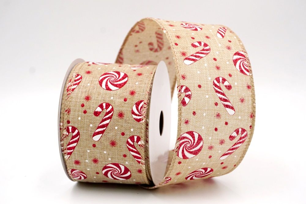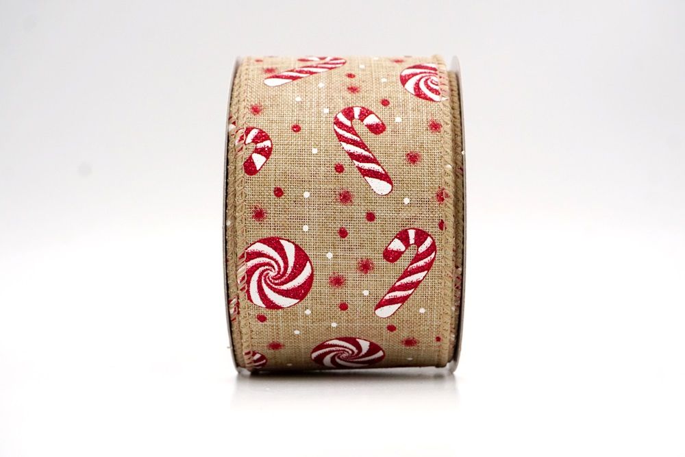 Das Weihnachts-Pfefferminzwirbel- und Zuckerstangen-Drahtband verleiht all Ihren festlichen Kreationen den perfekten festlichen Touch. Erhältlich in sowohl Kunstburlap als auch einfacher Webart, kommt dieses Band in klassischem Weiß und warmem Khaki und bietet Ihnen vielseitige Optionen, um Ihr Weihnachtsthema zu ergänzen. Erhältlich in Größen von 1 Zoll bis 2,5 Zoll und auf Anfrage an größere Breiten anpassbar, ist es darauf ausgelegt, die Bedürfnisse jedes kreativen Projekts zu erfüllen. Mit verspielten Zuckerstangenstreifen, fröhlichen Pfefferminzwirbeln und verstreuten Punkten verkörpert das Band die süße Freude der Feiertage. Die drahtgefassten Kanten ermöglichen eine einfache Formgebung und sorgen dafür, dass Ihre Schleifen und Akzente während Ihrer Feiertagsfeiern knackig und voll bleiben.