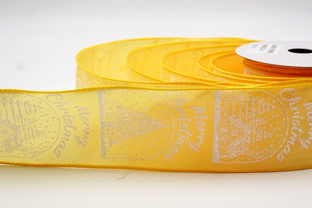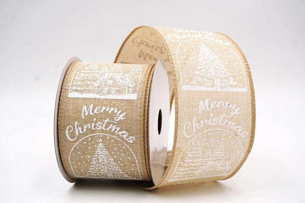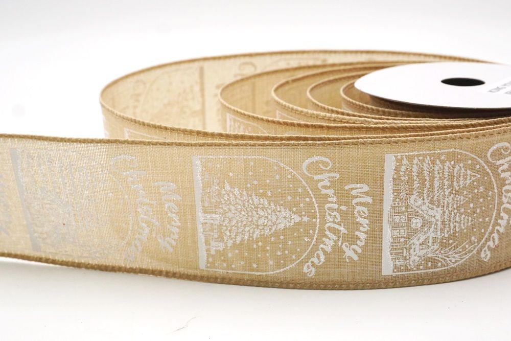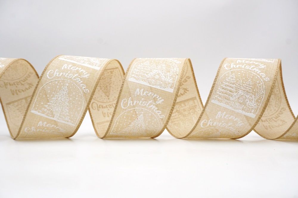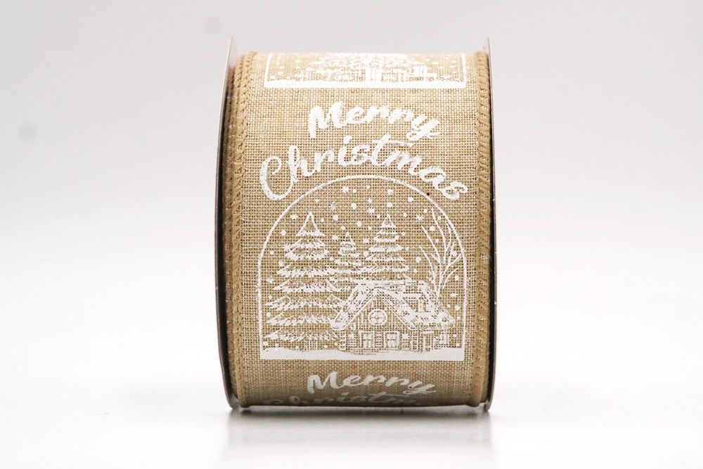 Fangen Sie den Charme eines Winterwunderlandes mit dem Weihnachts Schneehütte & Baum Design Drahtband ein.