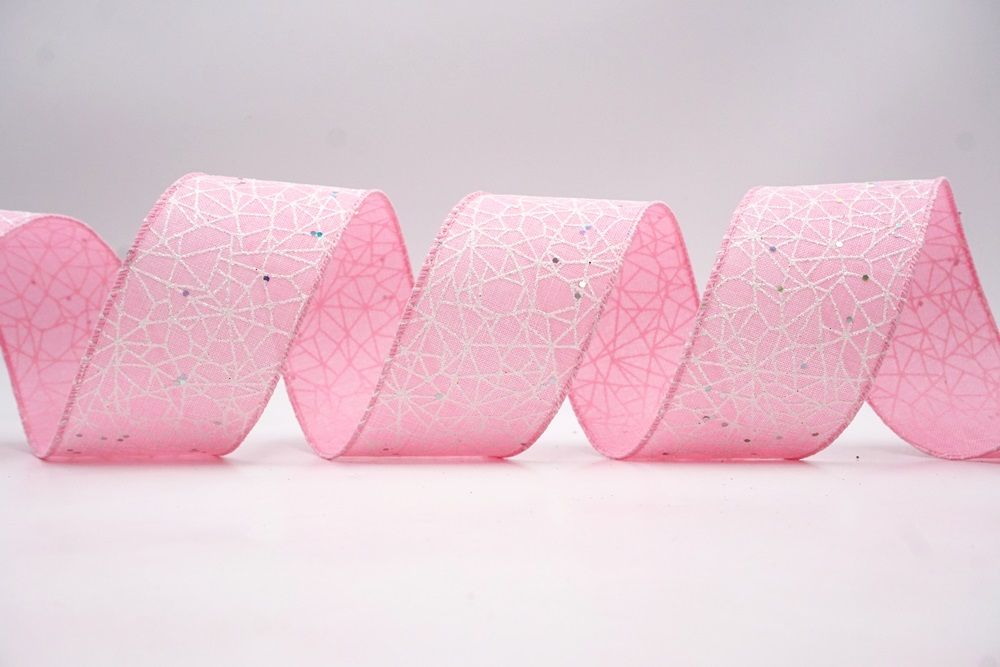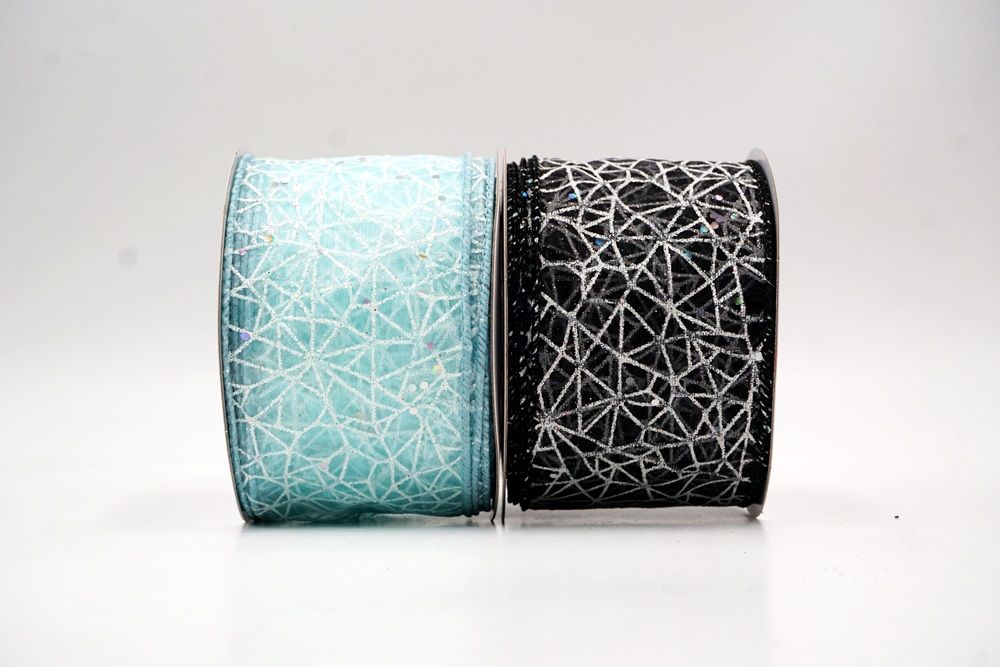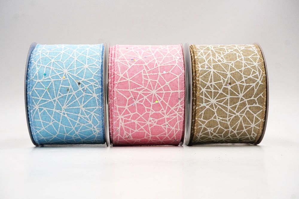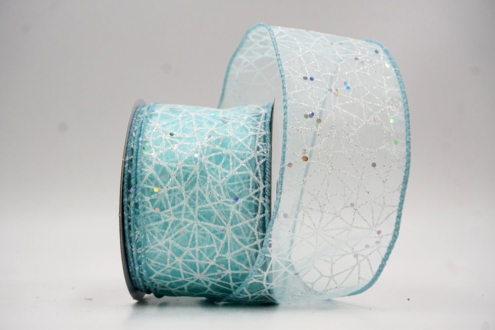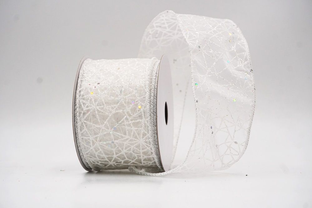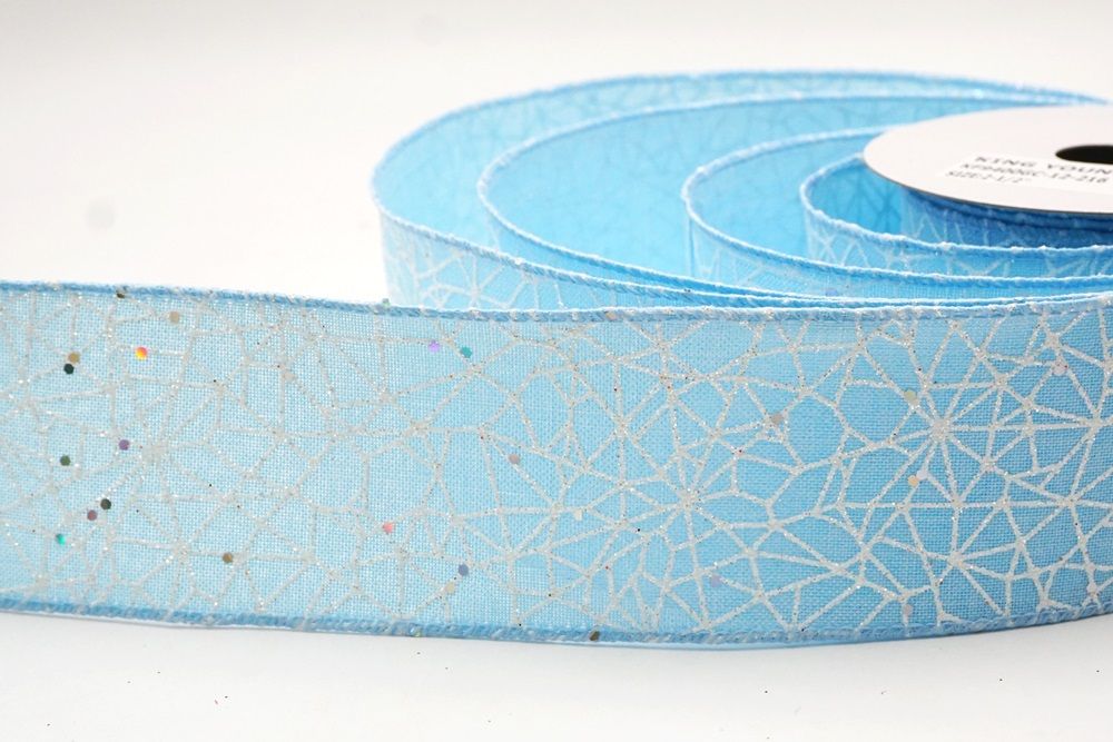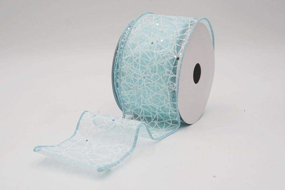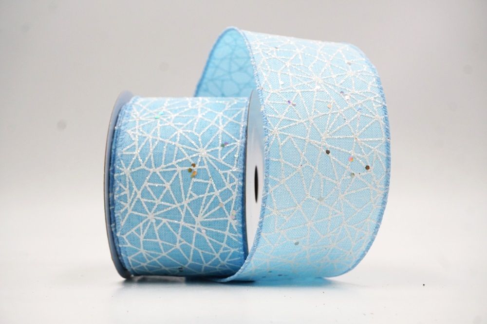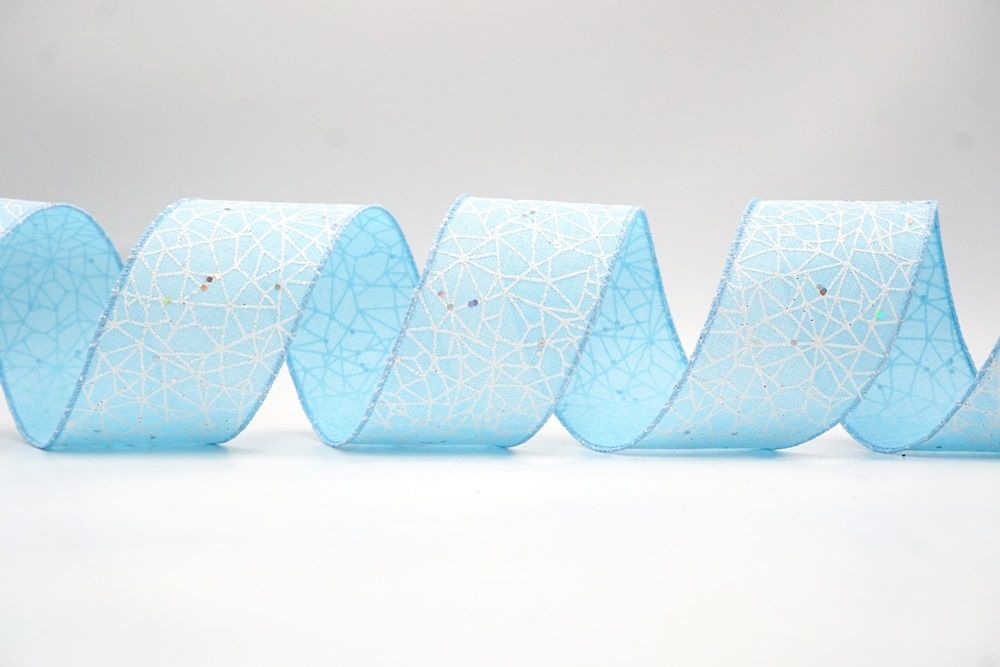 Dieses Band zeigt zarte Schneeflockenmuster auf transparenten und einfarbigen Geweben. Erhältlich in Hellblau, Creme, Rot, Weiß, Blau, Himmelblau, Weiß-Gold, Creme-Gold, Weiß-Rot und Rot-Rot, bietet es frostige Eleganz in mehreren Ausführungen.