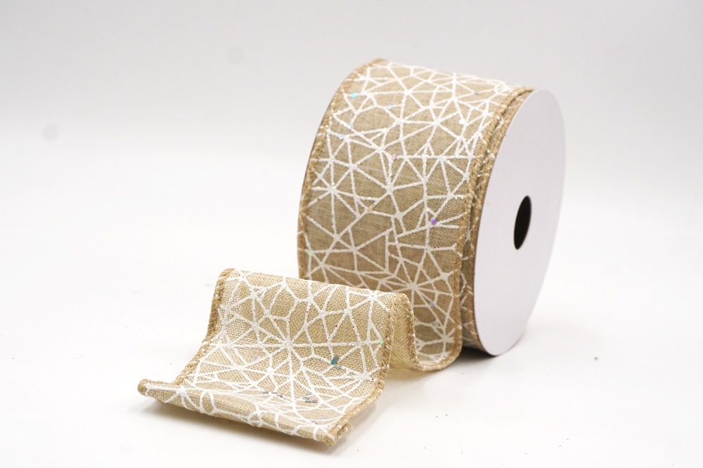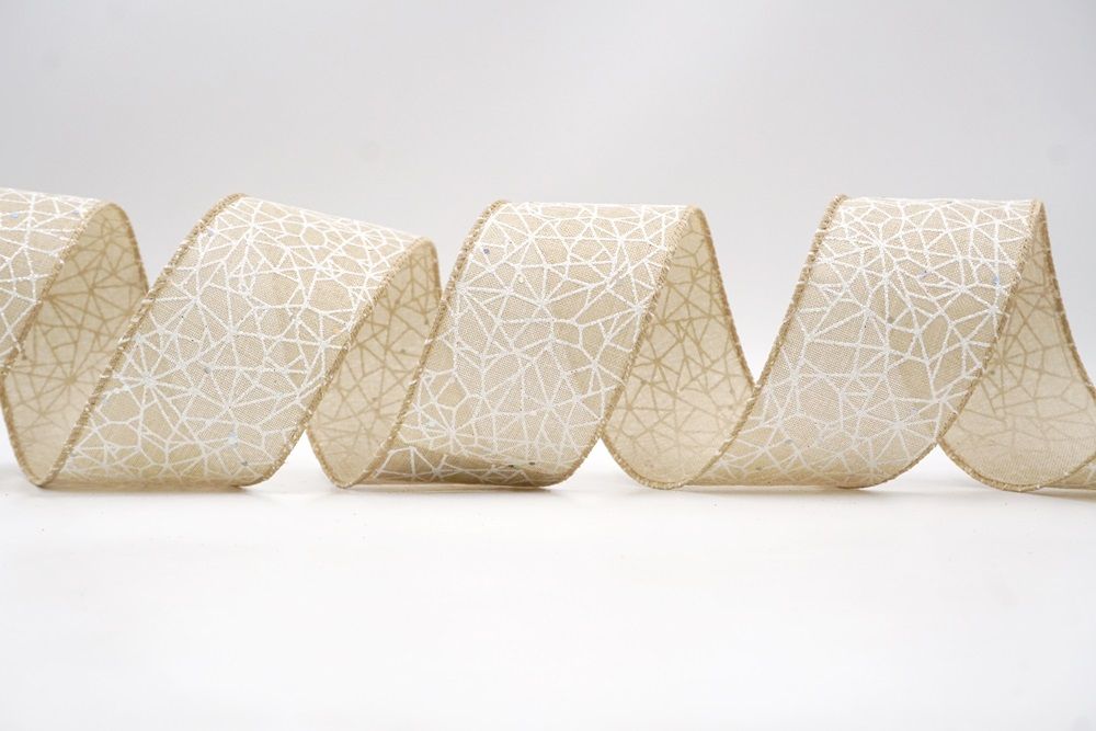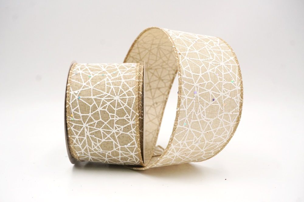 Dieses Band zeigt glitzernde Tannenzapfen- und Blattmotive, die auf transparenten, schlicht gewebten und künstlichen Jute-Stoffen gesetzt sind. Erhältlich in Weiß, Rot-Weiß, Hellblau-Weiß, Creme-Gold, Rot-Gold und Braun-Gold, bringt jede Farbvariante eine andere saisonale Stimmung in Ihre Dekoration.