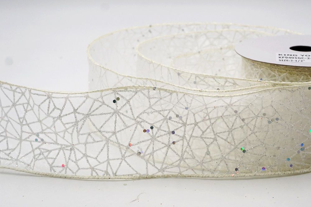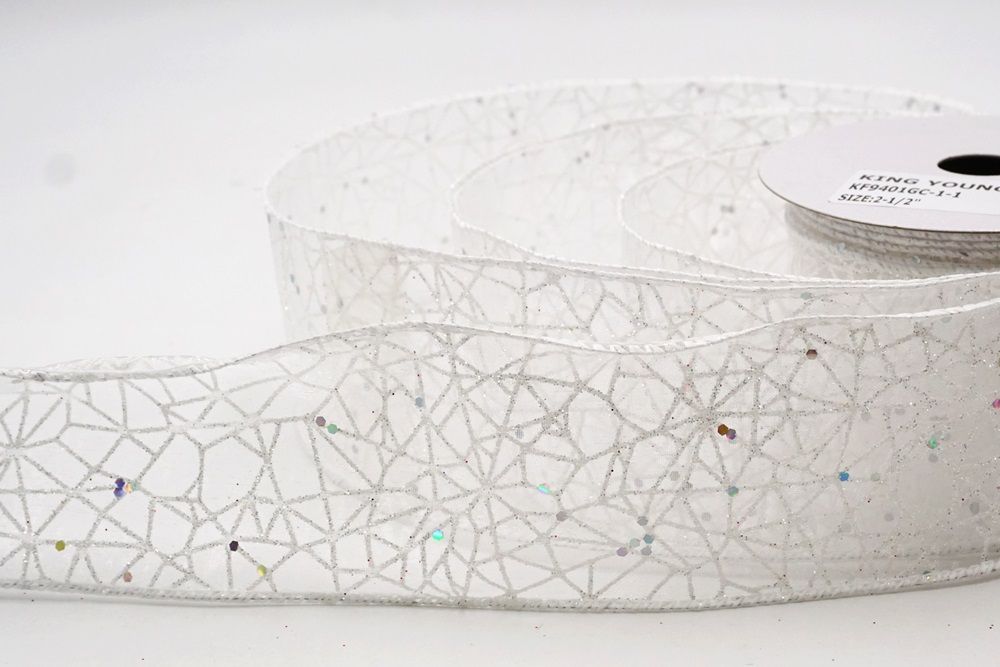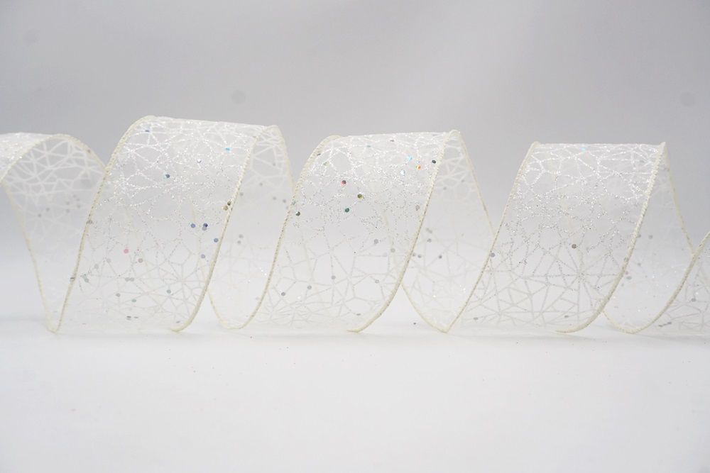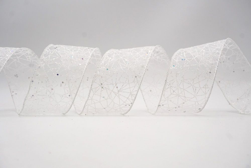 Geschmückt mit schimmernden Ornamentdesigns bringt dieses durchsichtige Band sofort Freude in die saisonale Dekoration. Wählen Sie aus einer breiten Palette von Farben, darunter Weiß, Weiß-Silber, Blau-Silber, Hellbraun-Gold, Weiß-Gold, Grün, Marineblau, Violett, Pink, Königsblau und Rot.