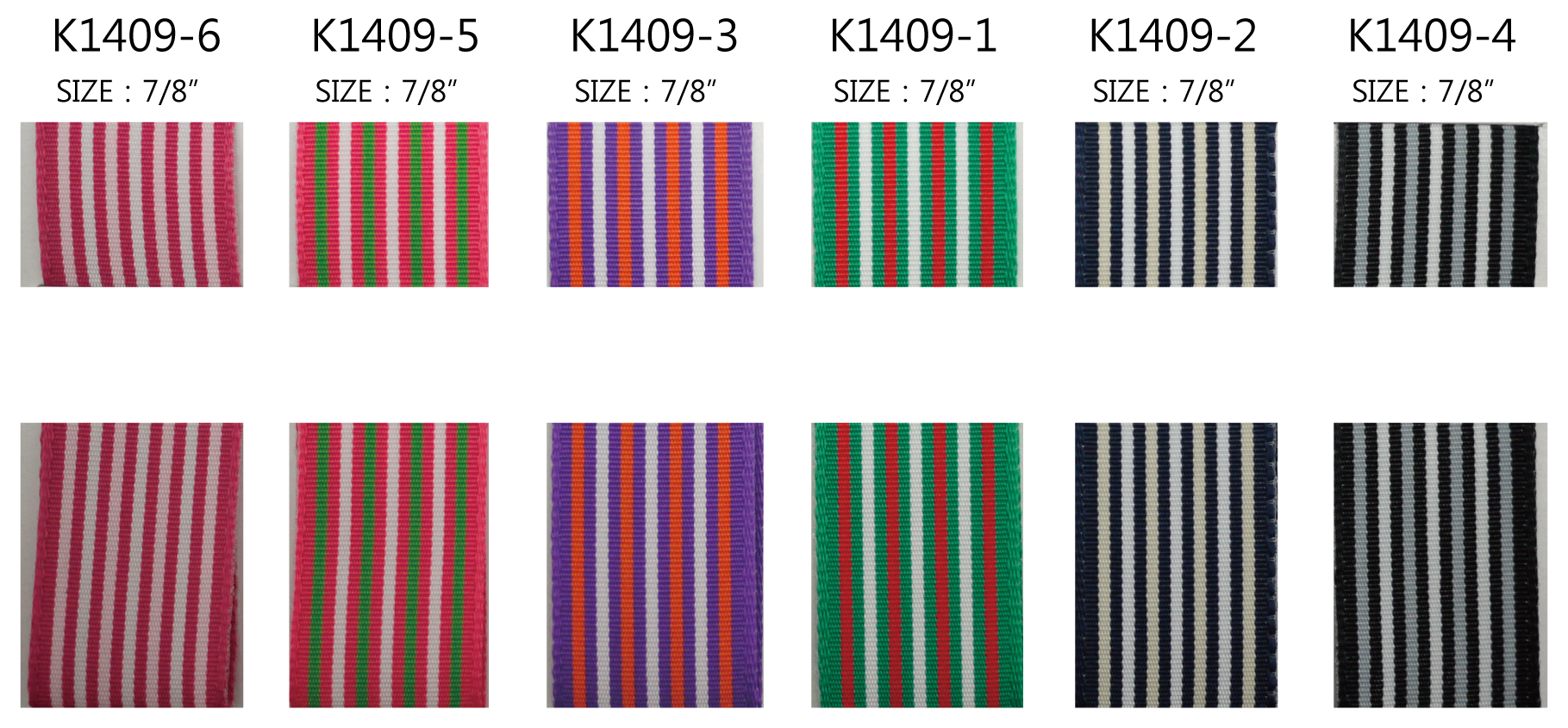 Diese Serie ist ein 7/8 Zoll gewebtes Band mit gleichmäßigen Streifen in verschiedenen Farben und ist umkehrbar. Es ist derzeit in 6 Farbkombinationen erhältlich: rot/grün, marine/beige, orange/lila, schwarz/grau, grün/knallpink und hellrosa/knallpink. Individuelle Farben können auf Anfrage arrangiert werden. Der Rand ist ohne Draht. Dieses Band eignet sich hervorragend zum Geschenke einpacken, für Bastelprojekte und mehr.