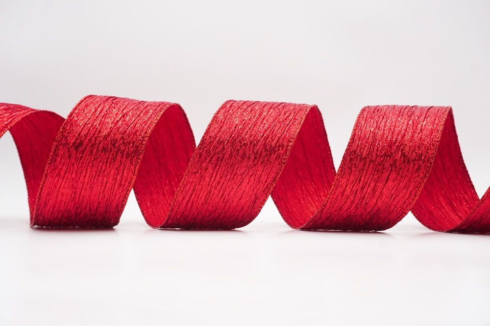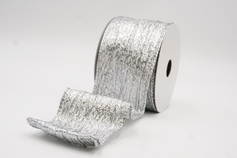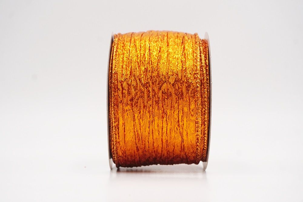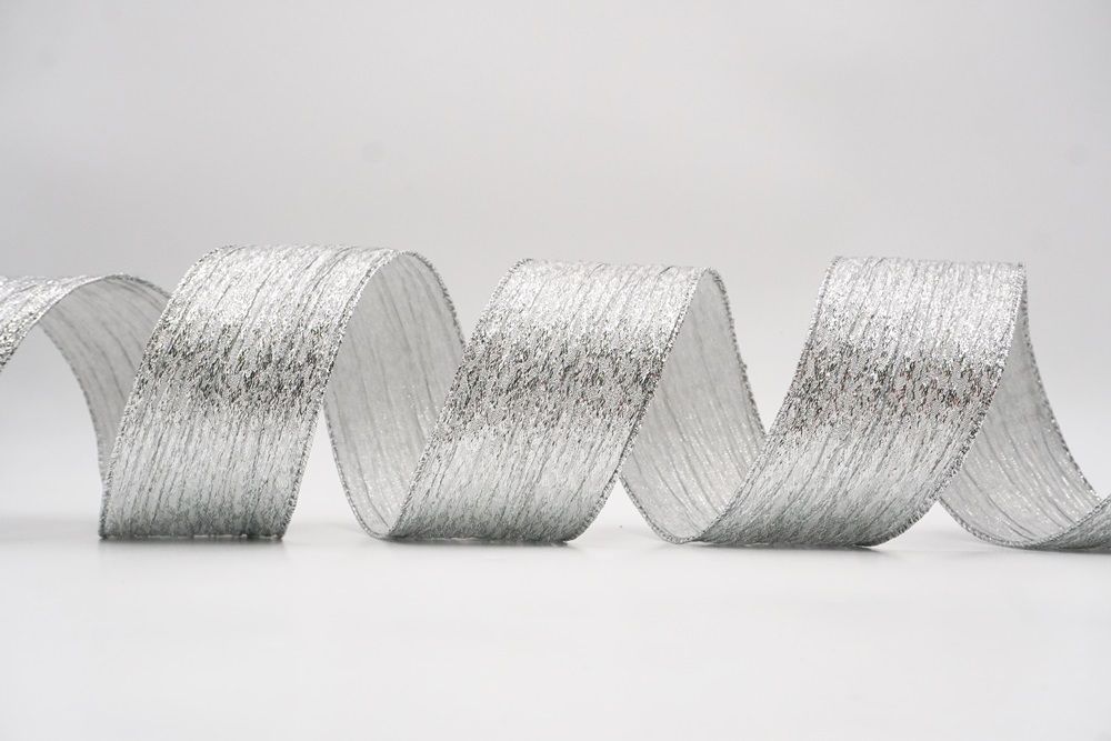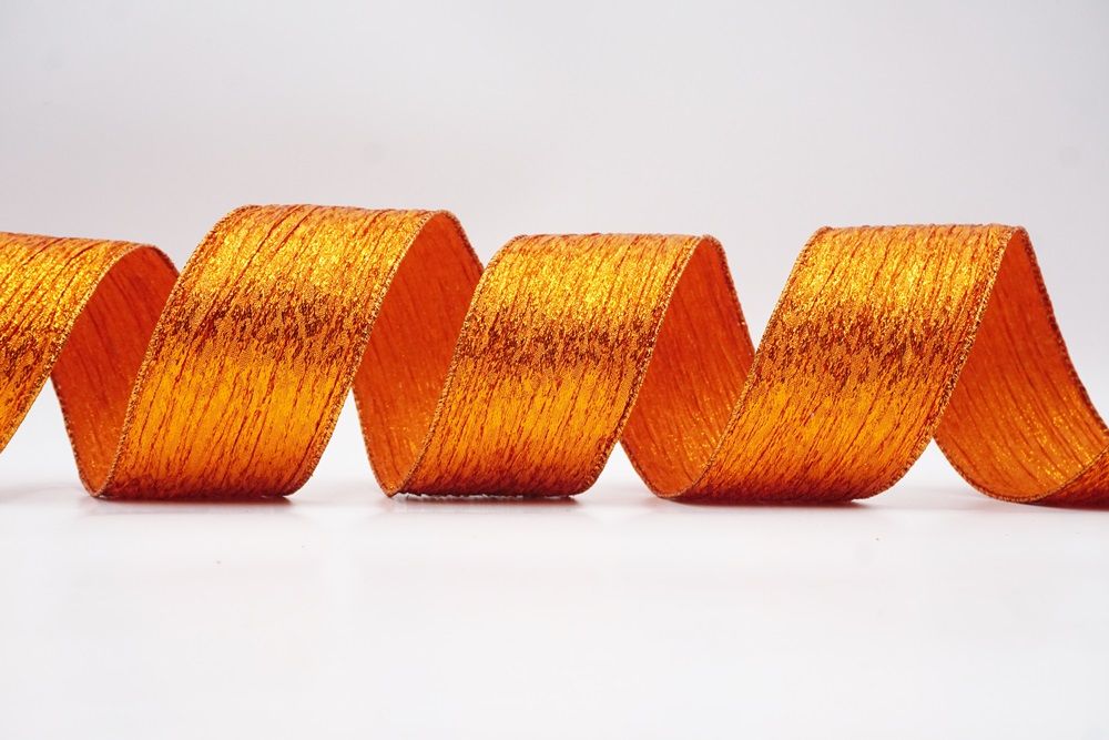 Verfügbar in Grau-Weiß, Hellbraun, Rot und Orange, kombiniert diese vierfarbige Kollektion zeitgenössische metallische Töne mit einer eleganten, glänzenden Textur. Jedes Band funkelt wunderschön im Licht und verleiht Weihnachtsdekorationen, Blumenarrangements oder Geschenkverpackungen einen modischen Glanz.