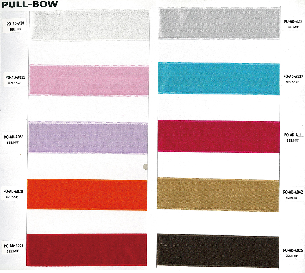 Diese Serie ist ein 1-1/4 Zoll Ziehschleifenband, das aus doppelseitigem Satin aus Nylon hergestellt wird. Auf der einen Seite des Satins befindet sich ein Faden, der das Geheimnis für das Herstellen einer Ziehschleife ist. Folgen Sie einfach ein paar einfachen Schritten und Sie können innerhalb von Sekunden eine hübsche Schleife binden. Sie schneiden einen Yard des Bandes ab, falten es in der Mitte, nehmen beide Schnüre an den Enden und ziehen sie einfach zusammen und binden sie. Diese elegant aussehende Ziehschleife ist einfach, schnell für jeden und perfekt für alle Dekorationen.