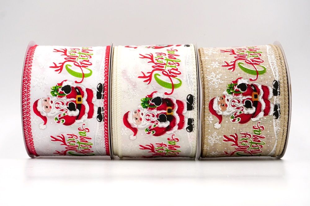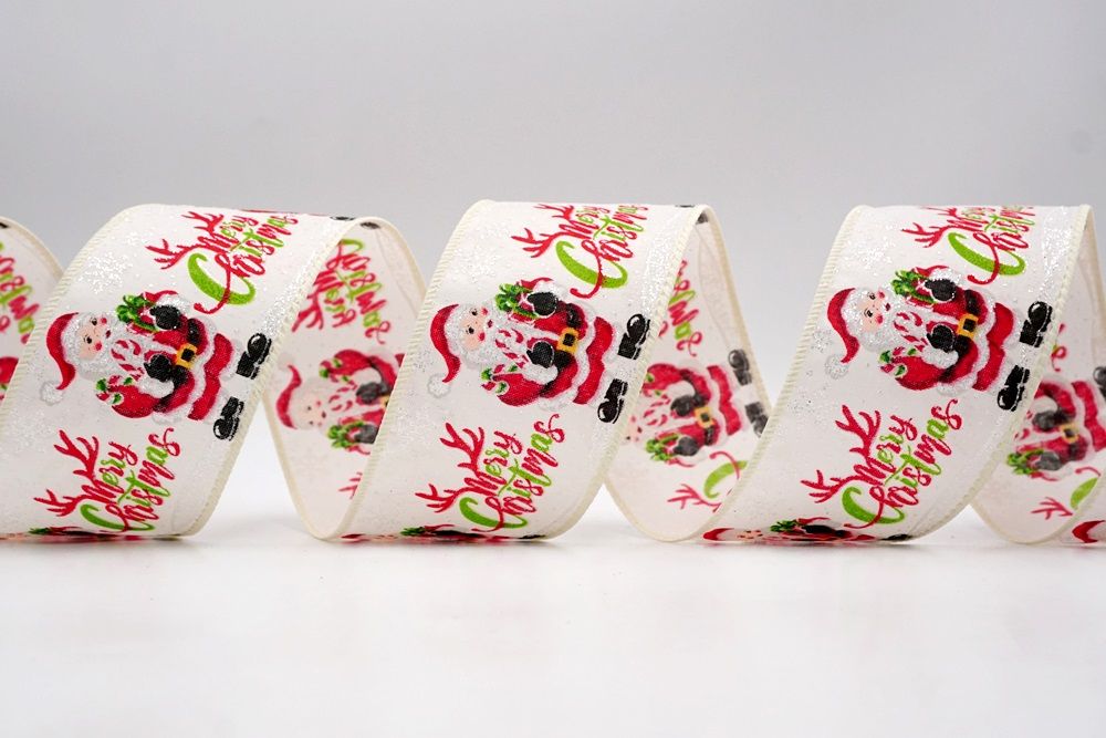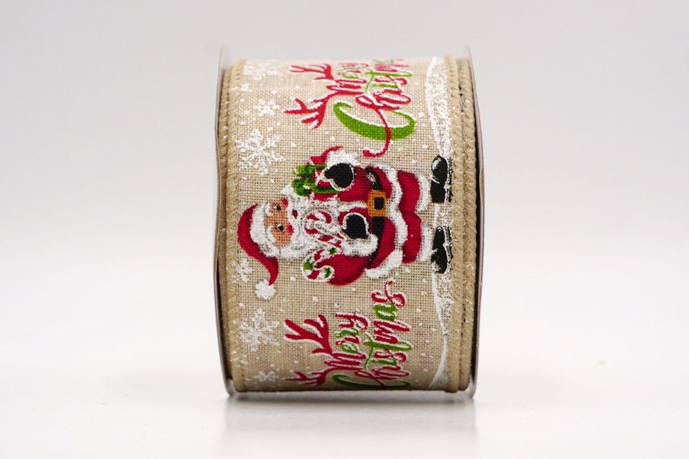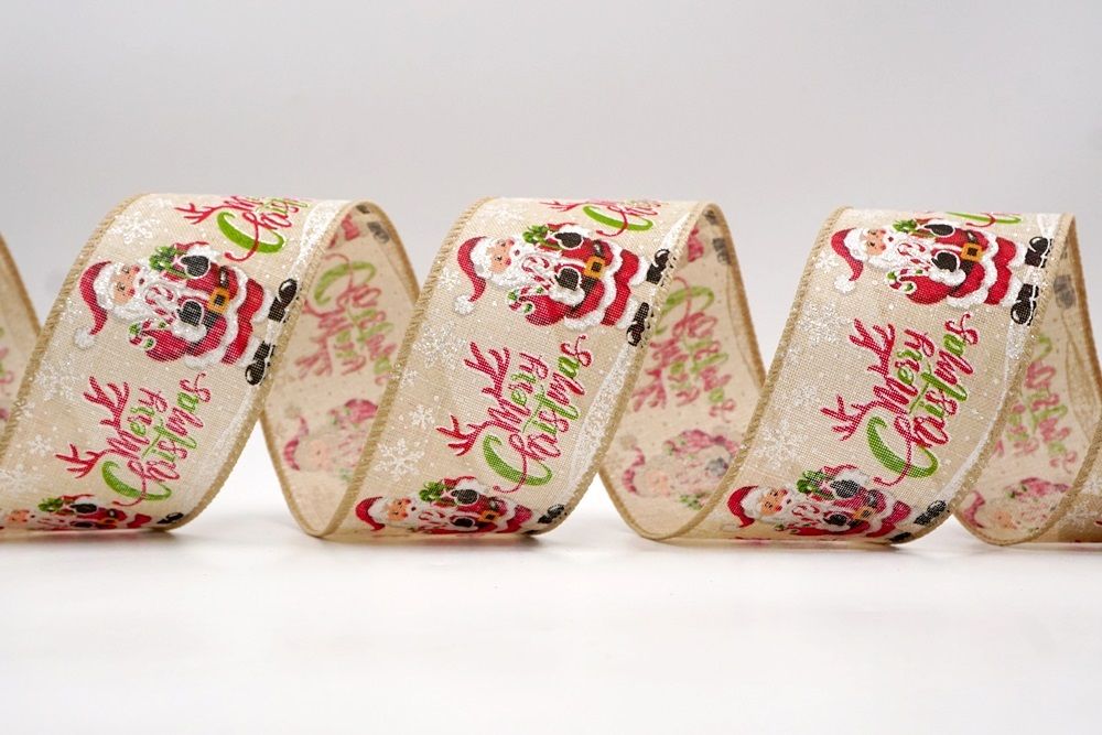 Feiern Sie die Freude der Feiertage mit unserem Santa Claus Frohe Weihnachten Drahtband, einem Design, das den wahren Geist von Weihnachten verkörpert. Mit dem fröhlichen Bild von Santa Claus, der festliche Akzente hält, kombiniert mit dem kräftigen „Frohe Weihnachten“-Gruß, bringt dieses Band sofort Wärme und Aufregung in Ihre Feiertagsdekoration. Erhältlich in Kunstburlap in Khaki und in einfacher Webart in Weiß und Creme, bietet es sowohl rustikalen Charme als auch zeitlose Eleganz, die zu jedem Einrichtungsstil passt. Mit einer Breite von 2,5 Zoll ist dieses Band vielseitig genug für eine Vielzahl von Anwendungen, egal ob Sie große auffällige Schleifen basteln, besondere Geschenke einpacken oder dekorative Akzente zu Kränzen und Girlanden hinzufügen. Die drahtigen Kanten sorgen dafür, dass das Band seine Form wunderschön behält, wodurch Ihre Designs stabil und bildschön werden.