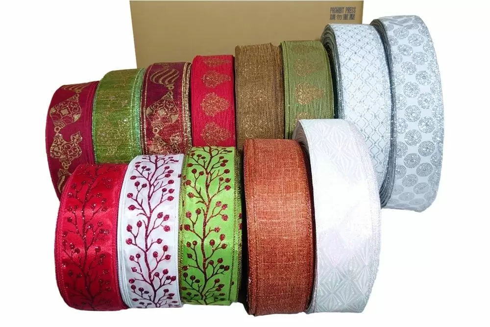 Hochwertige metallische gewebte Bänder mit Draht in kompletten Box-Sets zu unschlagbaren Preisen, perfekt für saisonale Dekorationen und Verkäufe in kleinen Mengen. Begrenzte Designs – schnell bestellen, bevor sie ausverkauft sind!