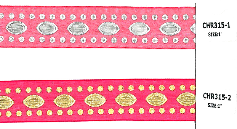 Το οργάντζα διάφανο κορδόνι πλάτους 1 ίντσας διαθέτει ασημένιες λαμιναρίσματα πάνω του. Τα λαμιναρίσματα είναι σε κουκίδες και σχήμα ελιάς και έχουν χαρακτεί θερμοτυπία στο κορδόνι. Το άκρο του δεν έχει σύρμα. Αυτό το κορδόνι είναι διαθέσιμο αυτήν τη στιγμή σε ροζ βάση με χρυσά ή ασημένια λαμιναρίσματα. Προσαρμοσμένα χρώματα μπορούν να γίνουν κατόπιν αιτήματος. Είναι ένα διασκεδαστικό κορδόνι και ιδανικό για ραπτική, χειροτεχνία, συσκευασία δώρων και όλες τις διακοσμήσεις.