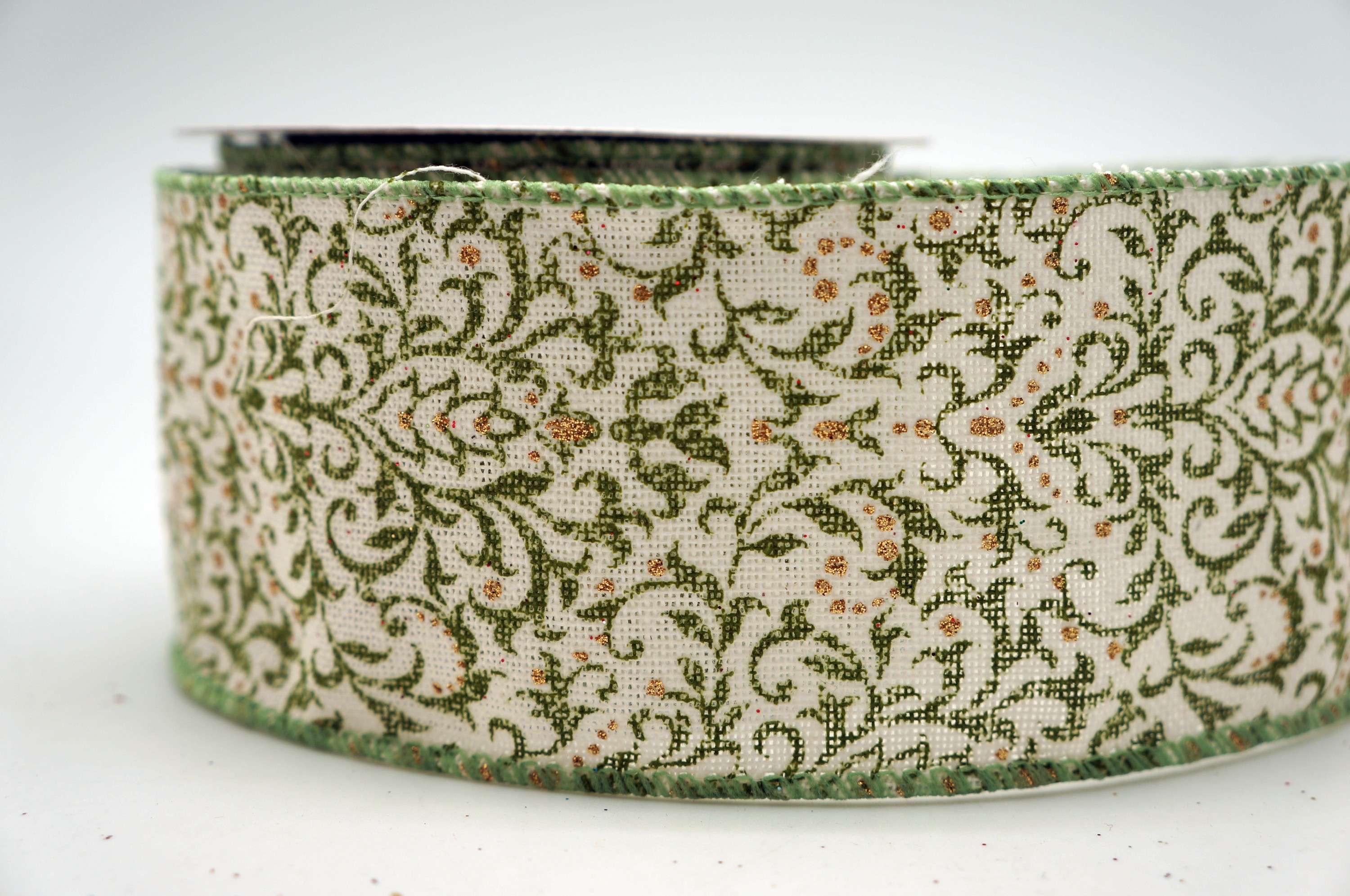 Αυτή η κορδέλα είναι διαθέσιμη σε 3 χρώματα υφάσματος και 4 συνδυασμούς χρωμάτων. Το άκρο της κορδέλας κόβεται και ράβεται με ματ νήμα που ταιριάζει και περιέχει σύρμα για να το διαμορφώσετε εύκολα. Καθώς το σχέδιο damask είναι αρκετά μεγάλο, είναι καλύτερο να γίνεται σε πλάτος 2-1/2” και πάνω. Στείλτε μας μια ερώτηση τώρα για να μάθετε ποια μεγέθη μπορούμε να κάνουμε.