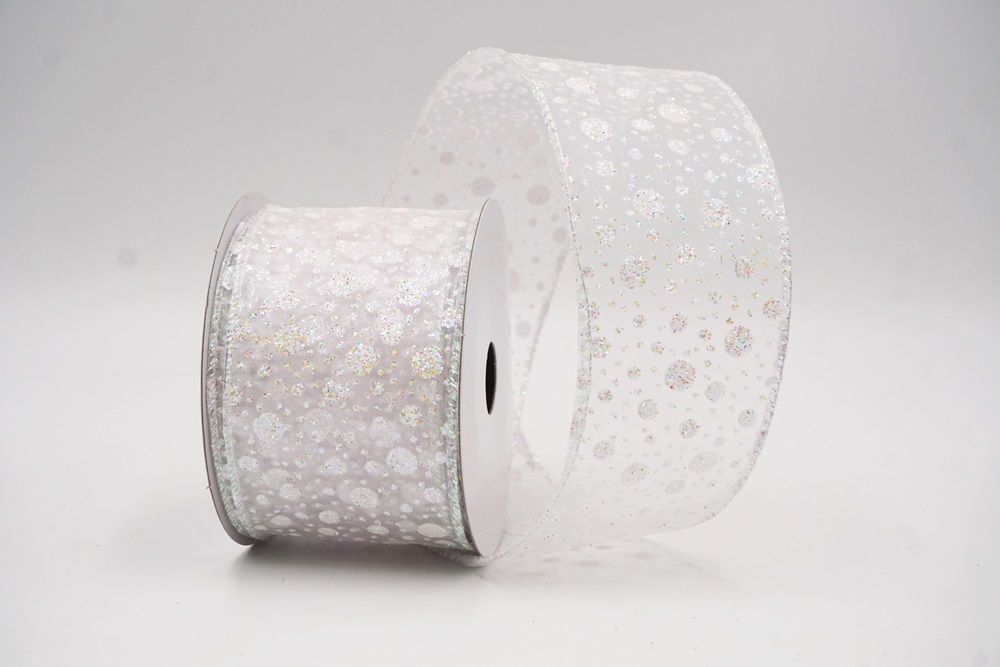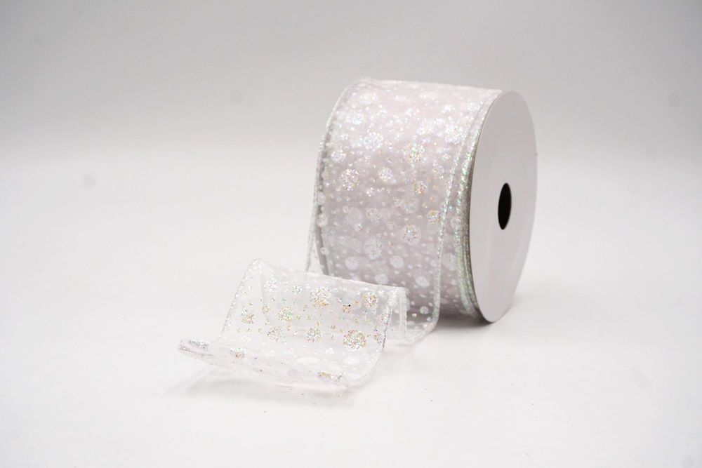 Αυτή η διαφανής κορδέλα διαθέτει λεπτές λεπτομέρειες με χιονισμένες κουκίδες, διαθέσιμες σε λευκό και κόκκινο χρώμα. Το ελαφρύ ύφασμά της και η απαλή λάμψη την καθιστούν μια ευέλικτη επιλογή για διακριτικά αλλά γιορτινά σχέδια.