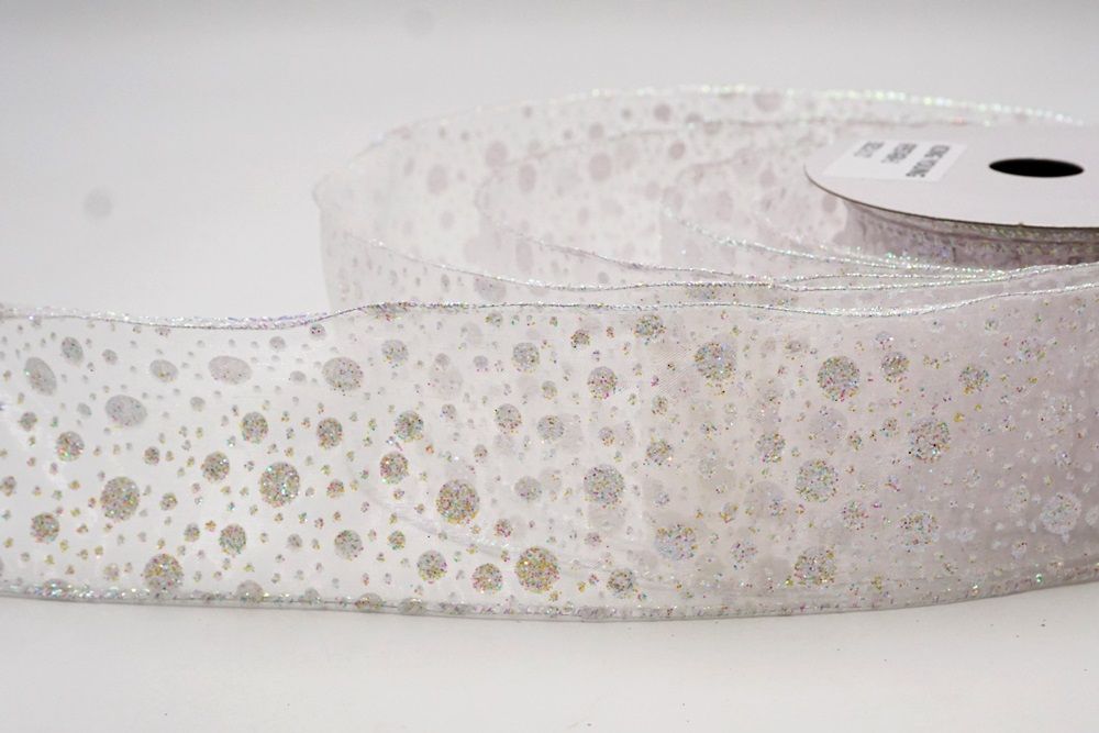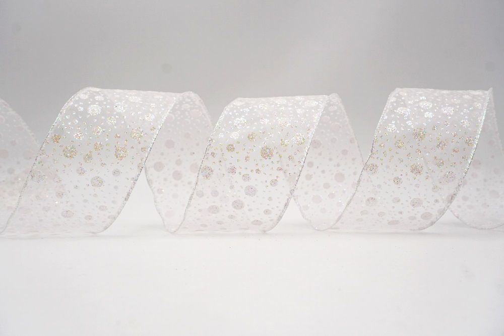 Διατηρήστε τη διακόσμησή σας απλή και κομψή με τη Λευκή Χιονισμένη Τελείες Σατέν Ρίγα.