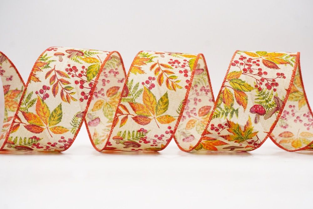 The autumn leaves wired ribbon is available in three beautiful tones: cream, light brown, and beige. The soft faux burlap fabric delivers an organic look that pairs perfectly with fall arrangements, centerpieces, and handmade craft designs. Its wired edge supports sculpted bows and layered displays with ease.