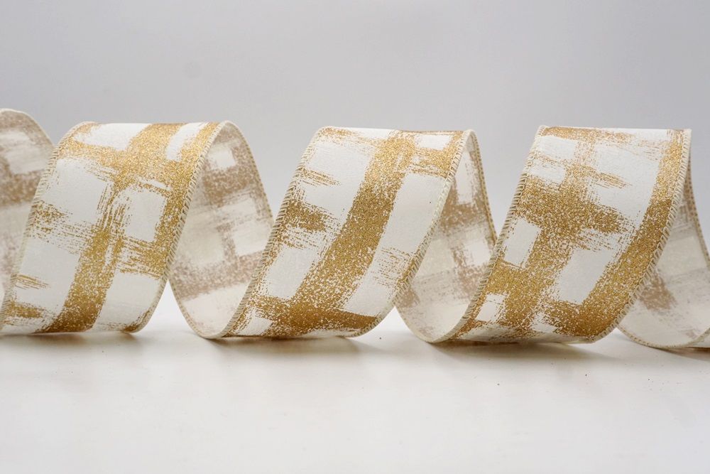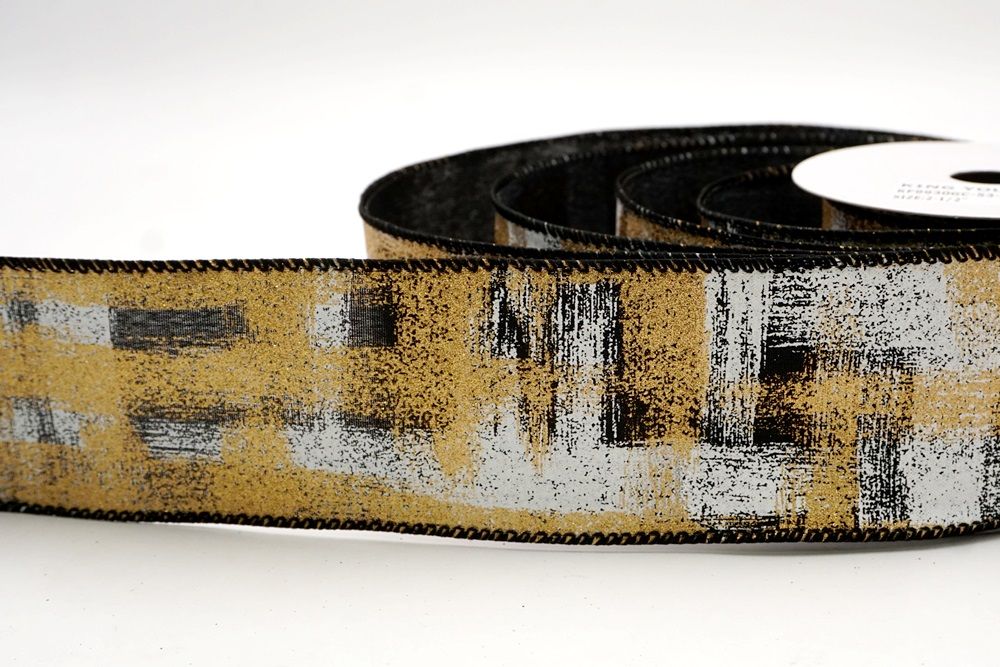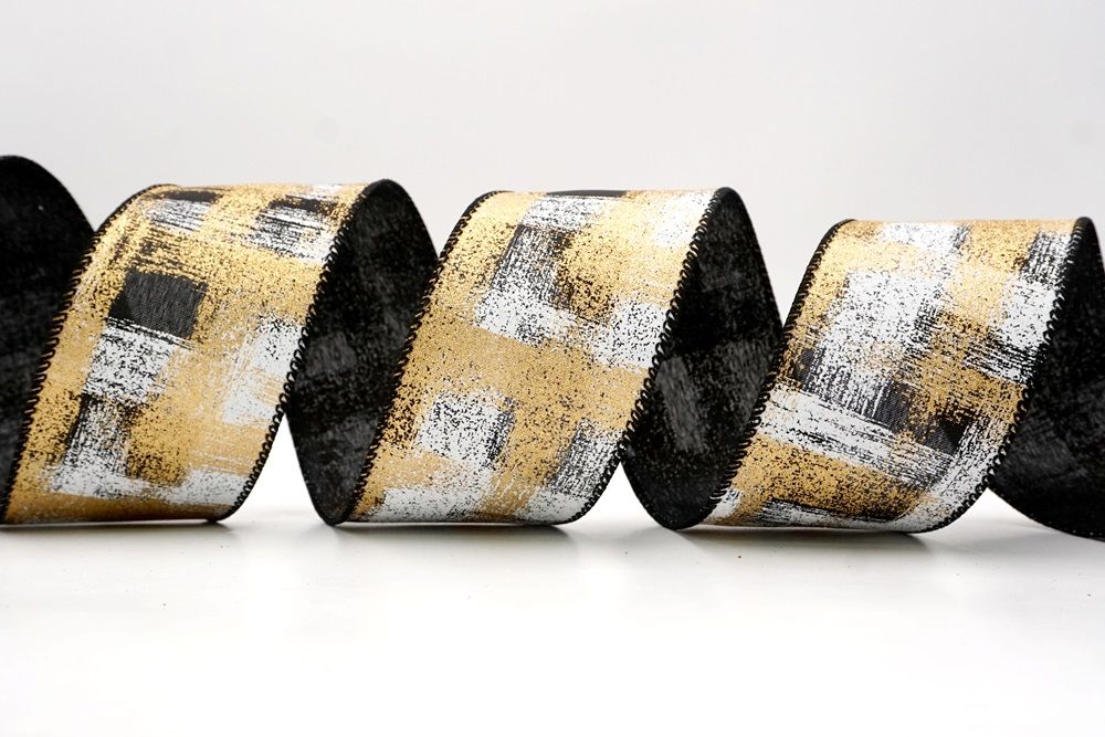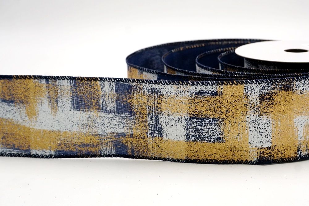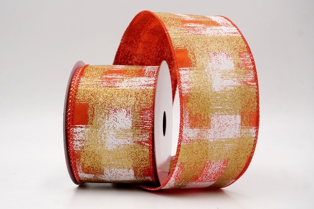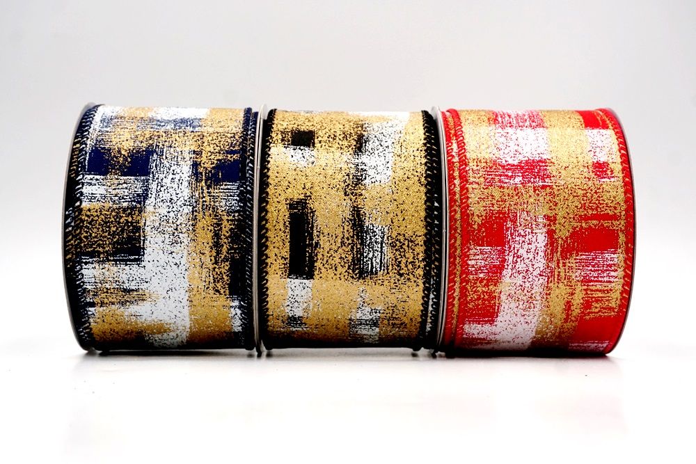 The Brushstroke Plaid Wired Ribbon offers a rustic yet highly contemporary appeal for any project. Faux burlap fabric provides a beautiful, substantial texture, lending itself to both farm-style and modern designs. A distressed brushstroke plaid pattern covers the surface, giving the material a hand-painted, artistic finish. This specific ribbon is available in many practical sizes, from 1 inch to 2.5 inches and beyond, ensuring a perfect fit for any craft. Color selection includes a vibrant orange, a classic cream, a deep navy blue, a bold red, a festive green, and a stark black. A unique metallic finish on the brushstroke pattern gives the plaid a rich shimmer that catches the light beautifully.