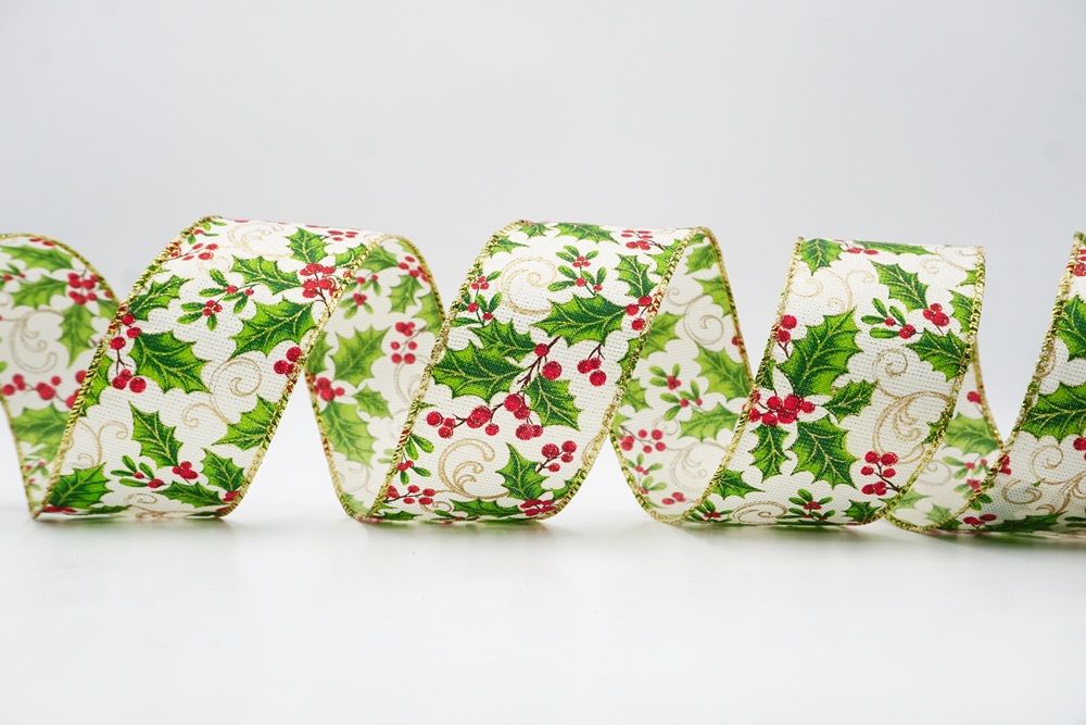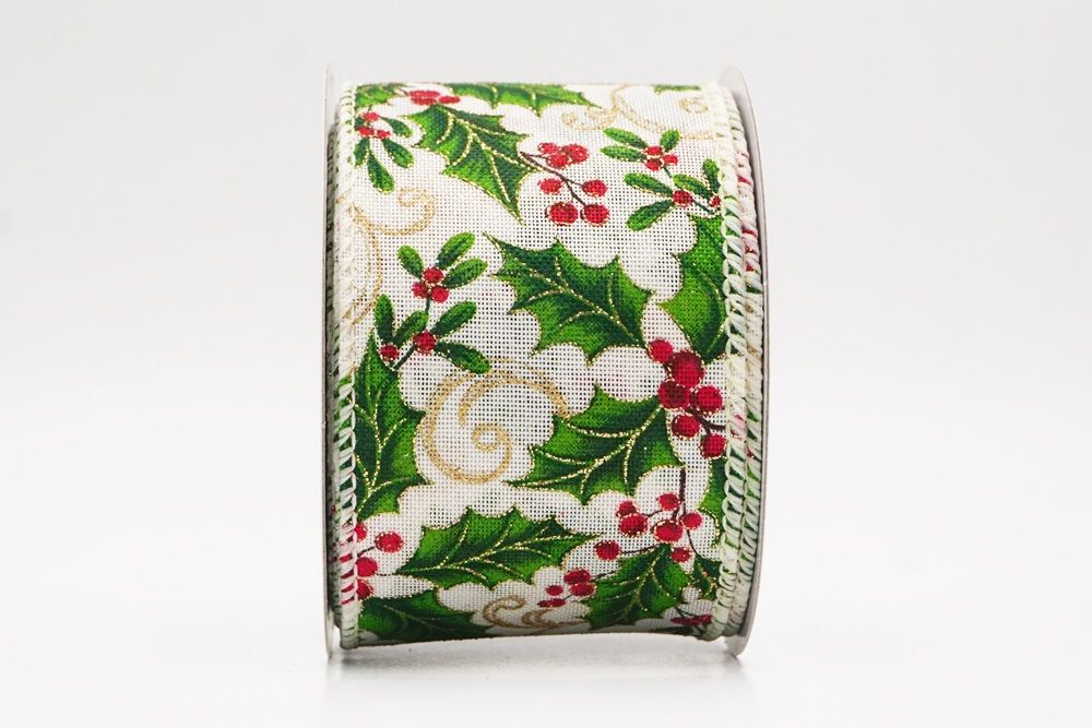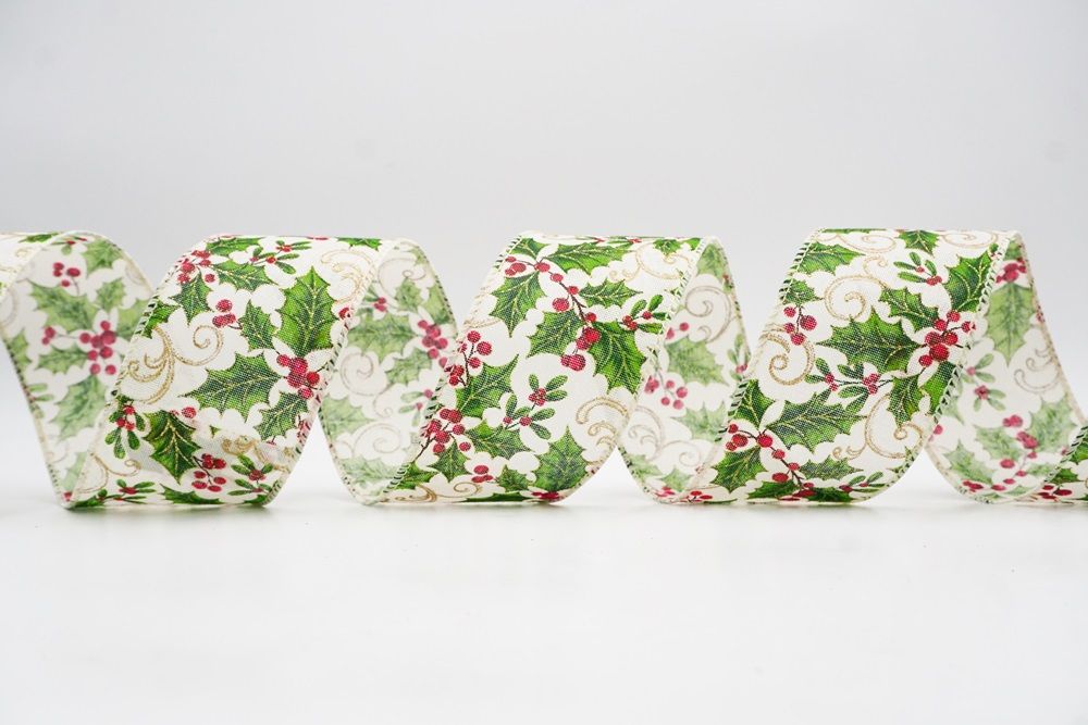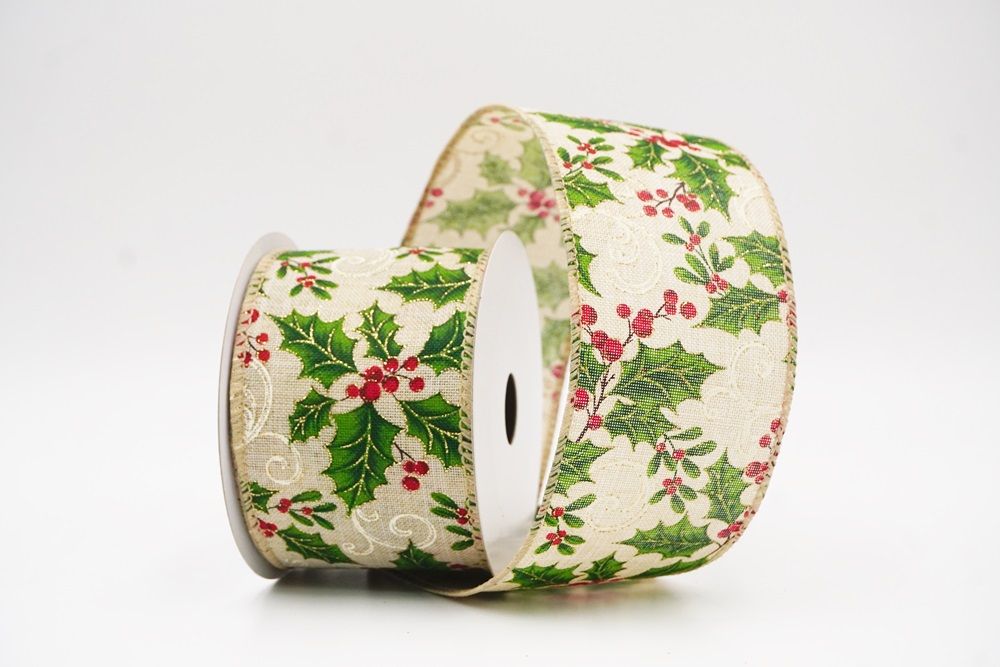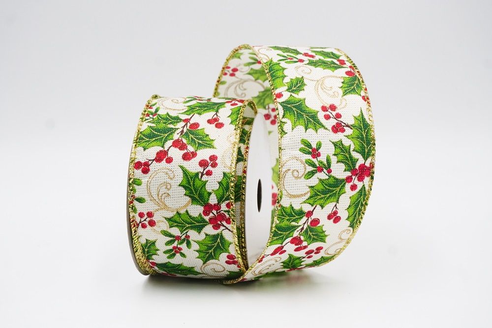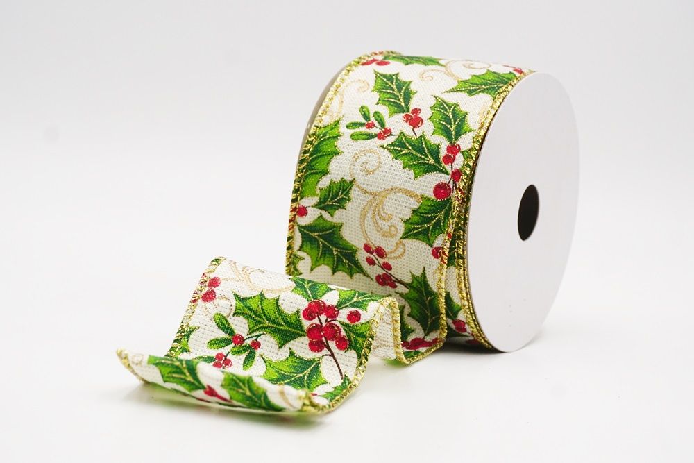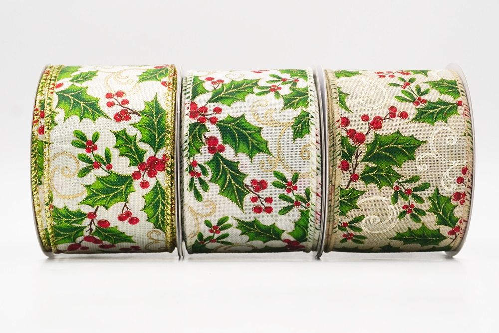 Classic Holly Leaves & Christmas Berry Wired Ribbon_KF9747.KF9748