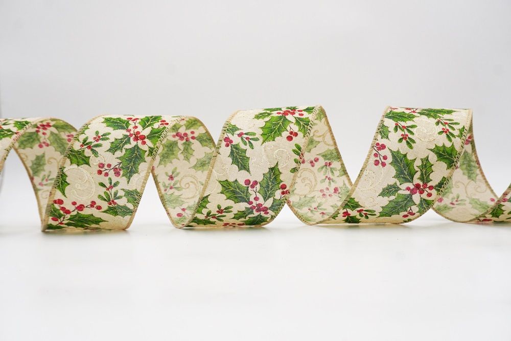 Capture the warmth of traditional Christmas décor with the Classic Holly Leaves & Berry Wired Ribbon.