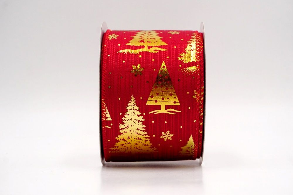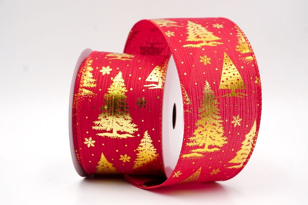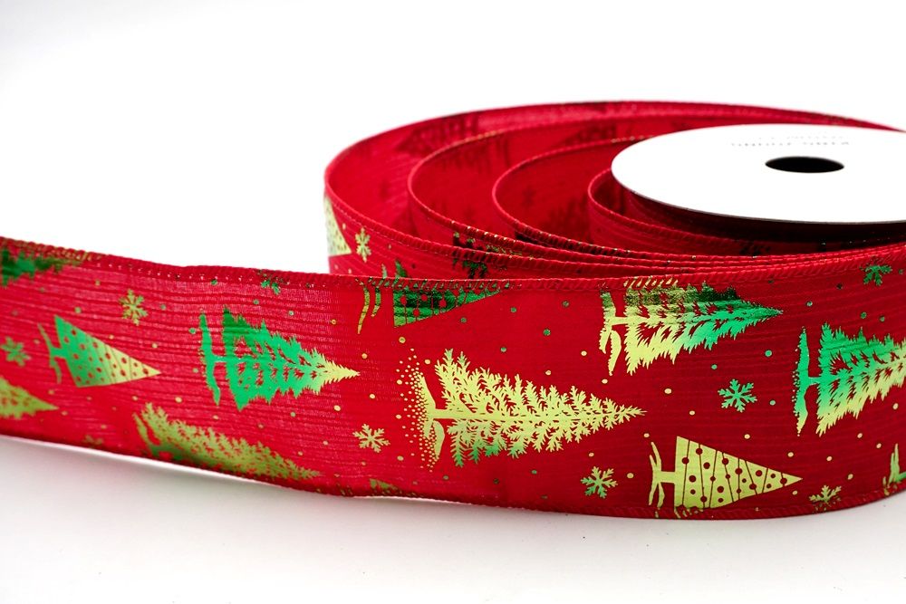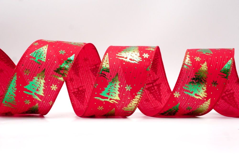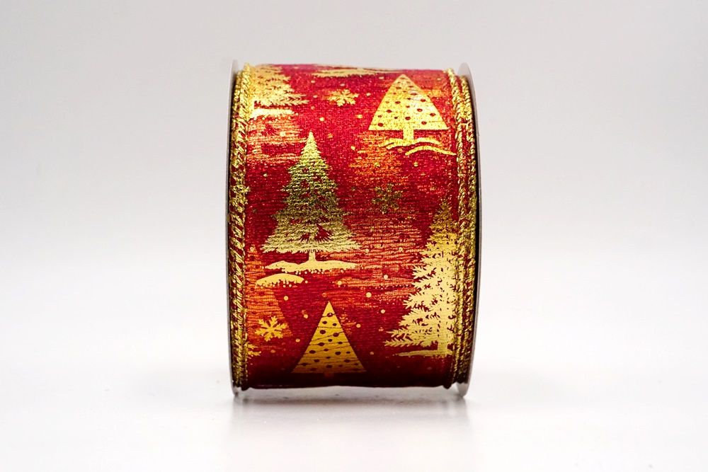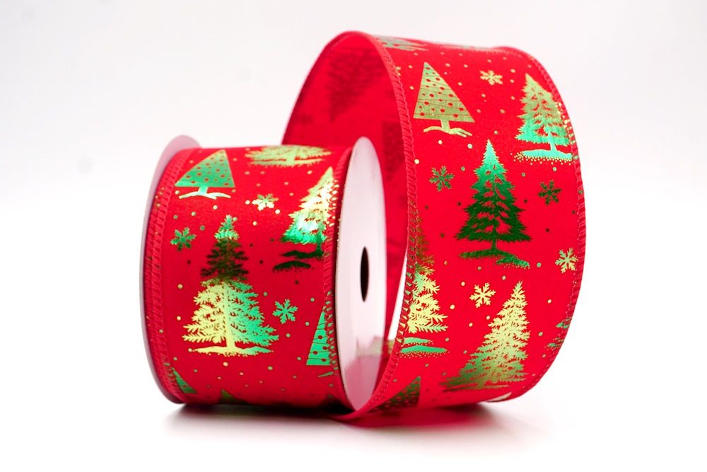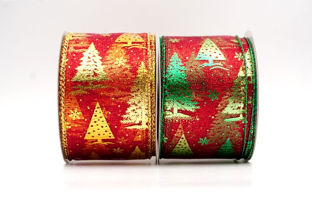Festive Holiday Tree Foil Print Wired Ribbon_KF9423