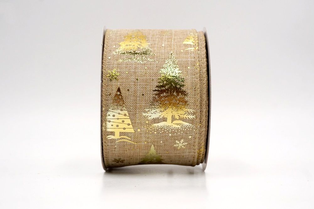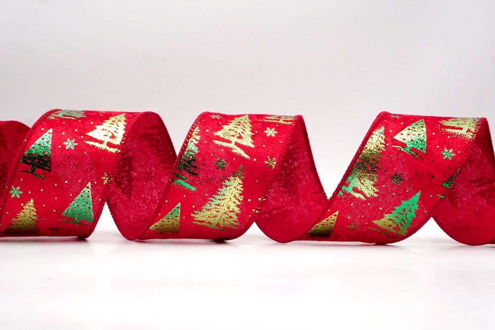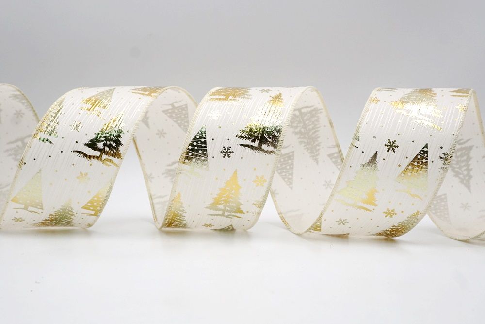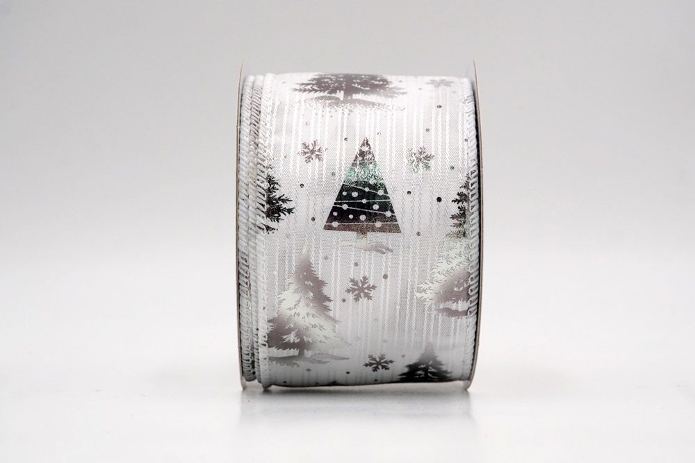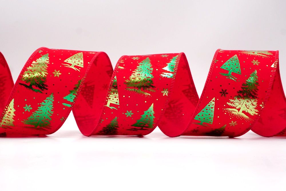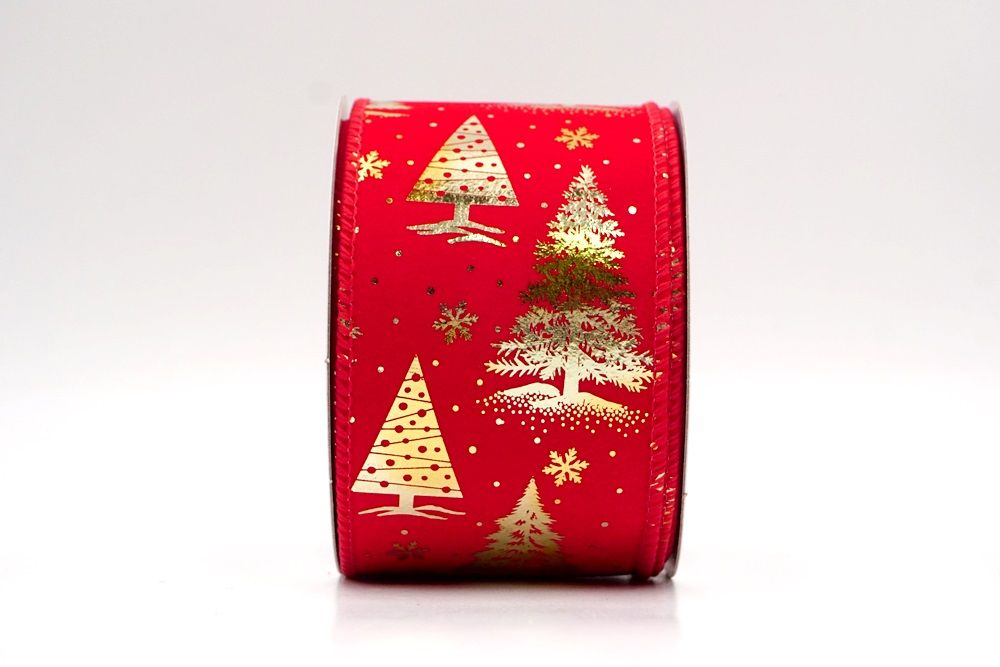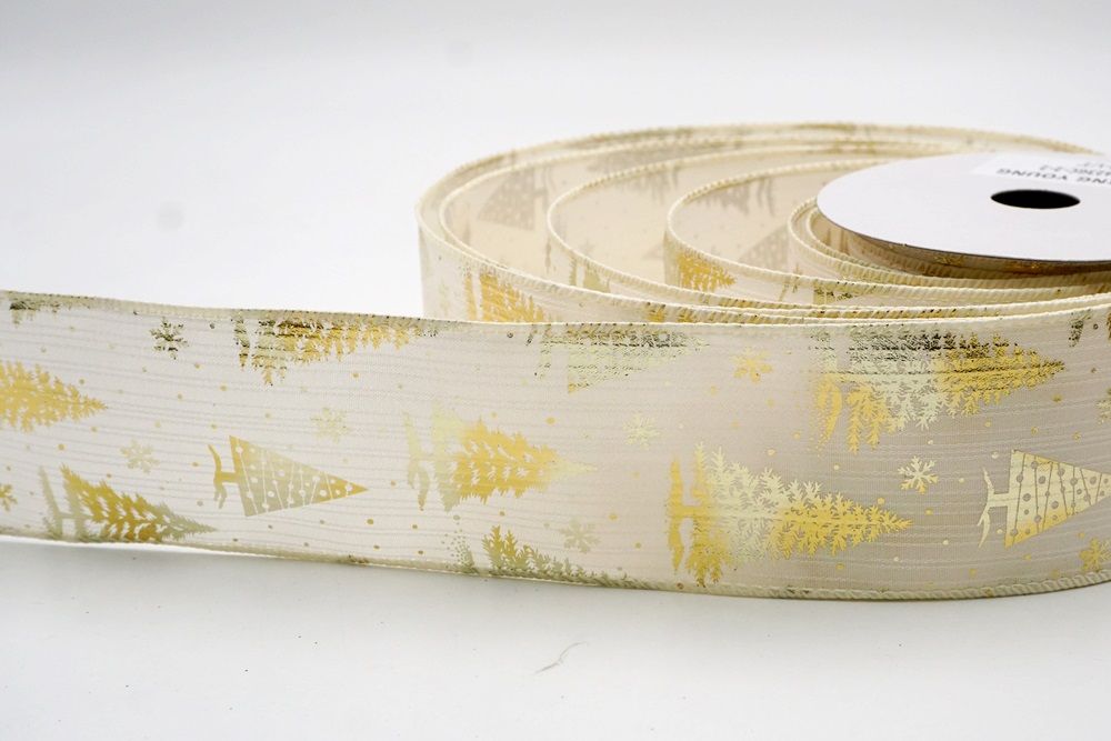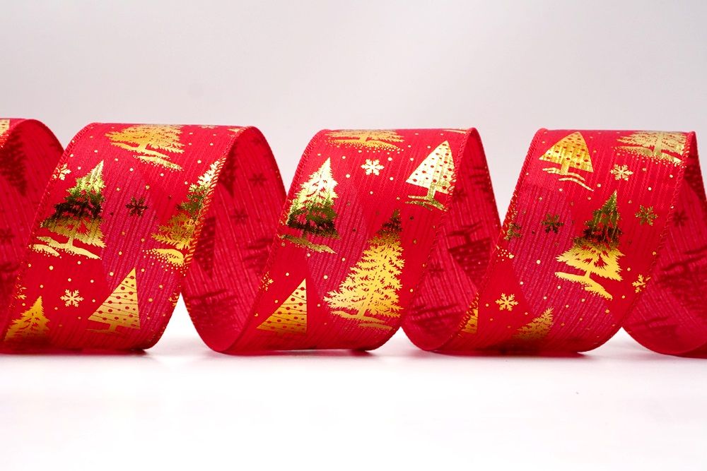 Festive Holiday Tree Foil Print Wired Ribbon_KF9423