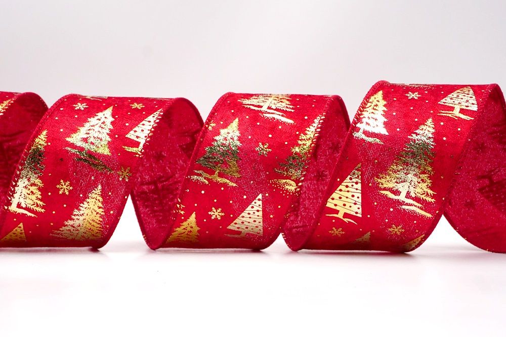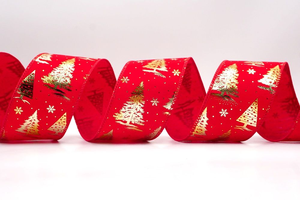 Discover timeless holiday charm to your celebrations with the Festive Holiday Tree Foil Print Wired Ribbon, a versatile and eye-catching addition to your seasonal décor.