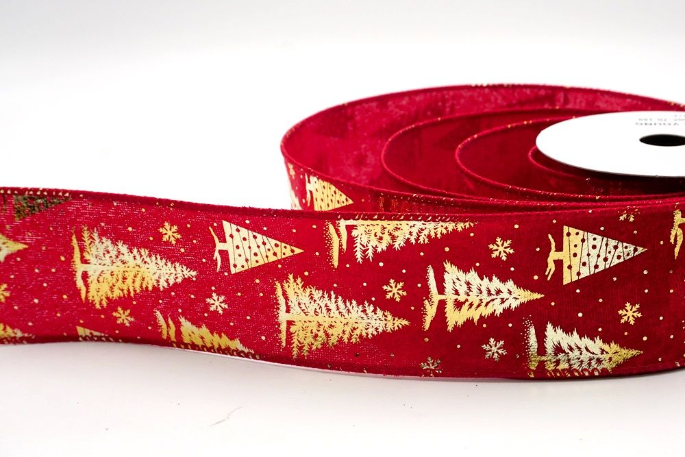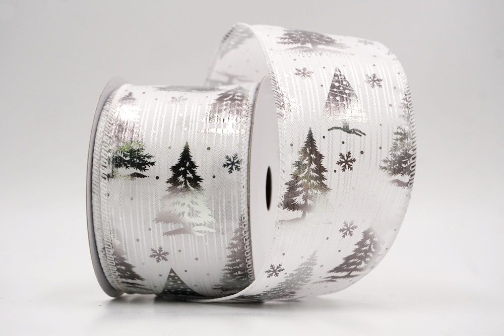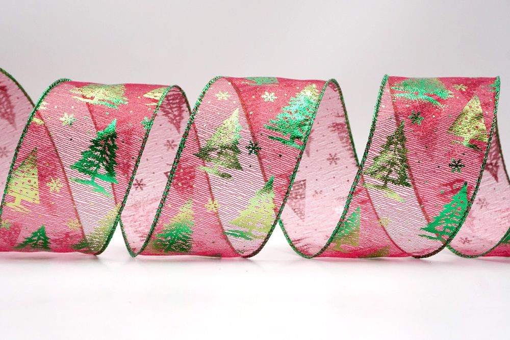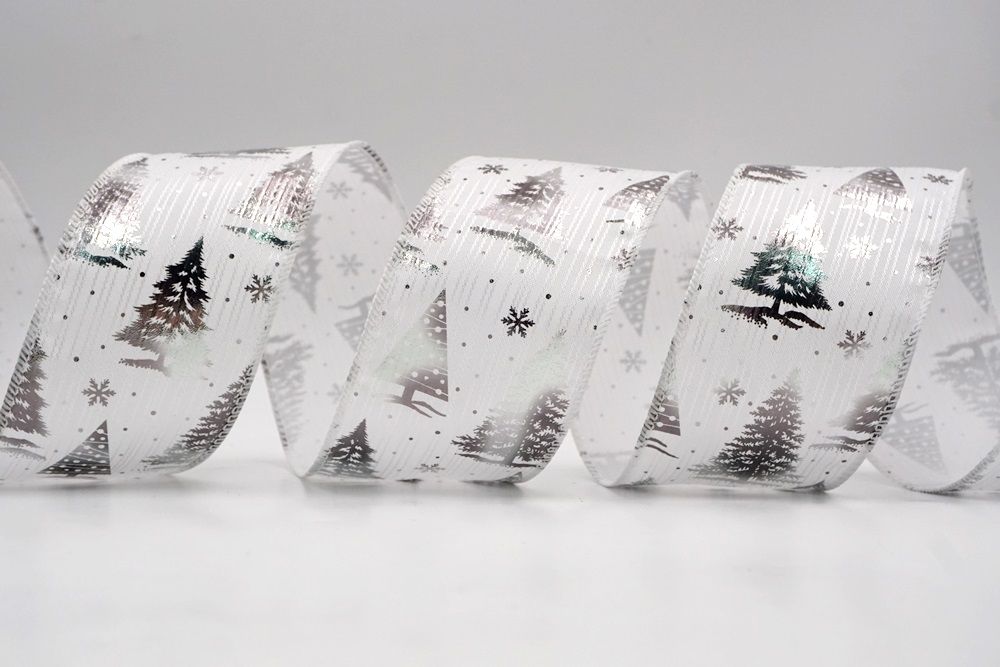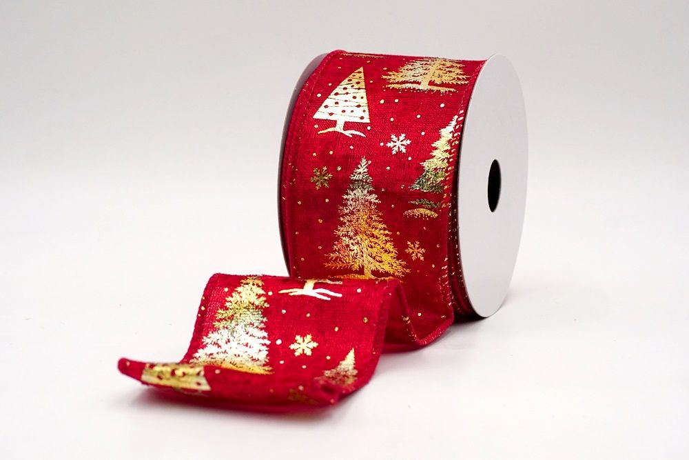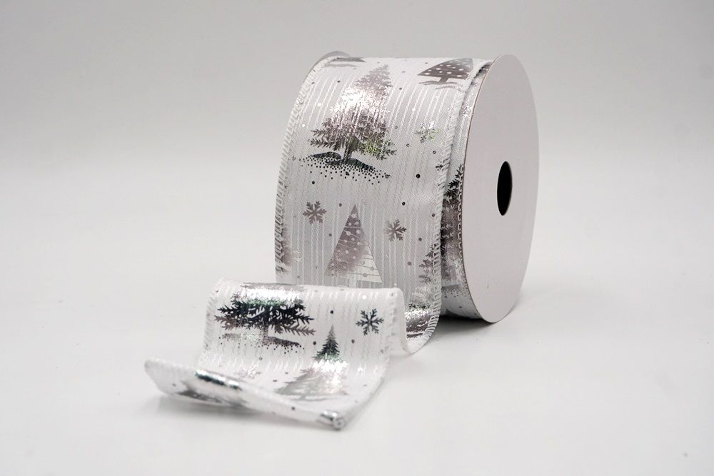 Festive Holiday Tree Foil Print Wired Ribbon_KF9424