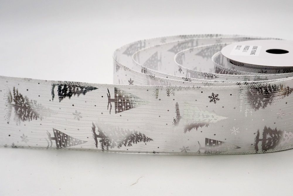 Festive Holiday Tree Foil Print Wired Ribbon_KF9420