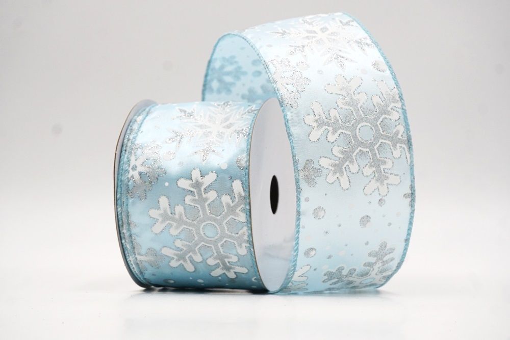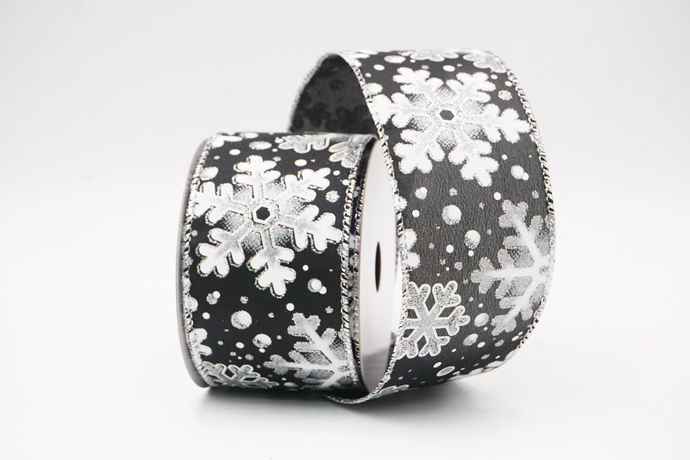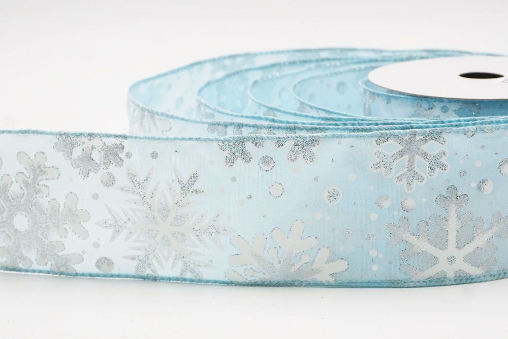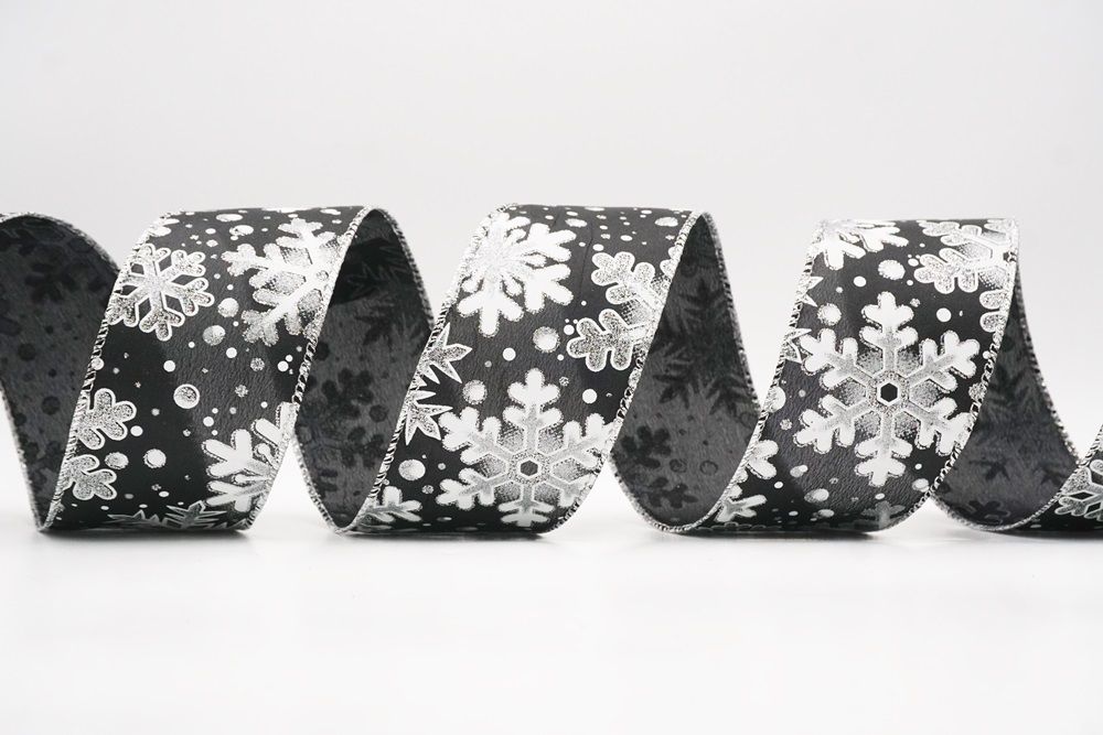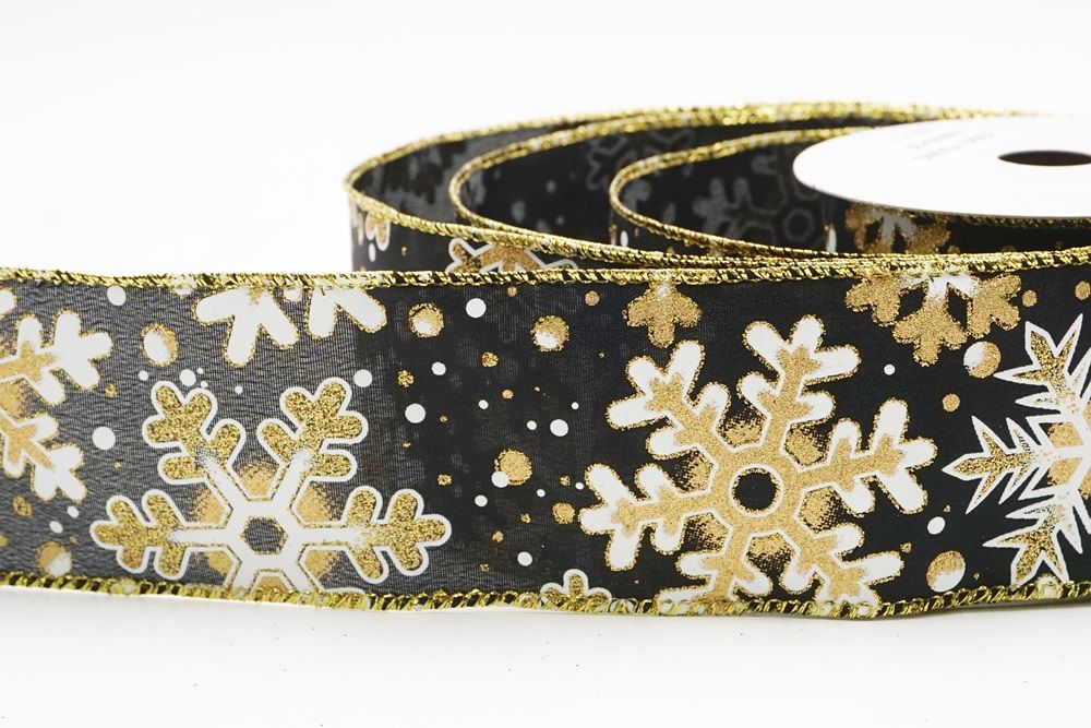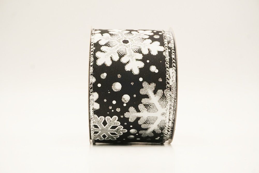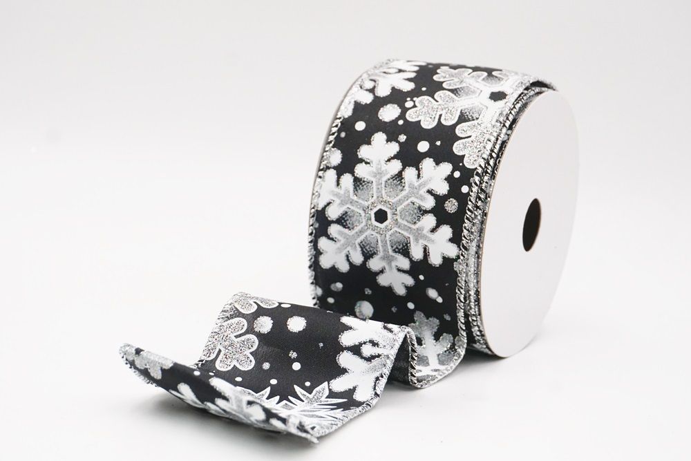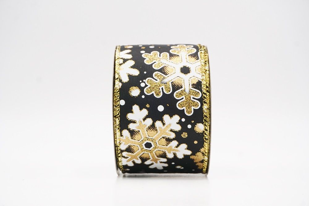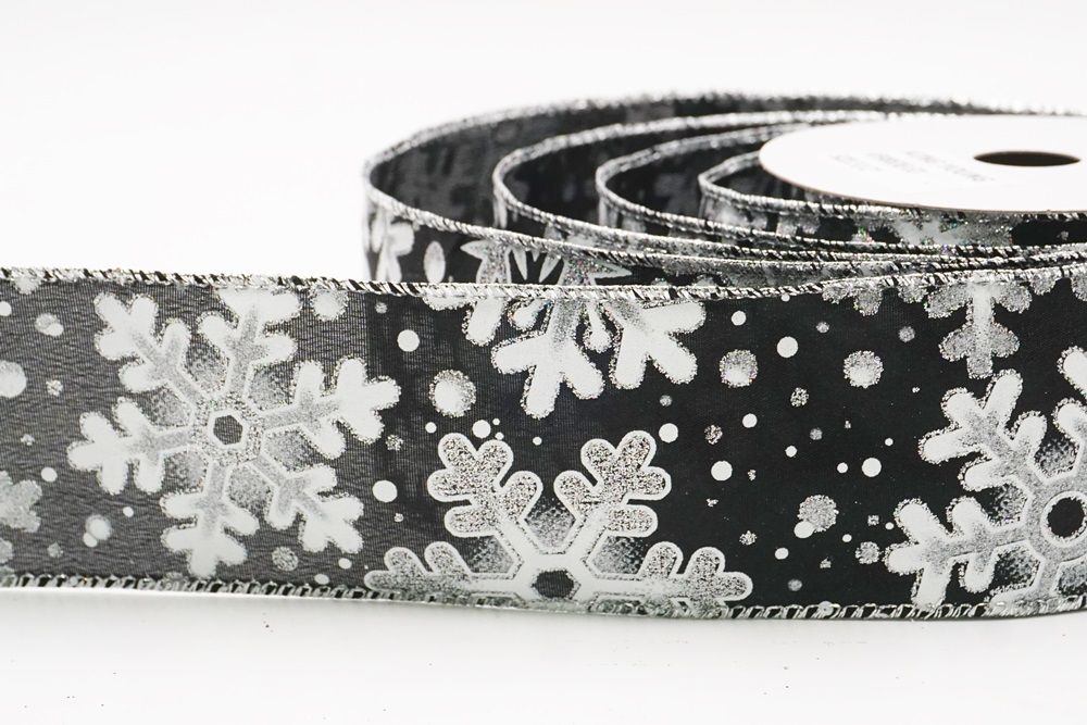 This collection includes 9 beautiful colors such as Black-White, Black-Gold, White, Cream, Blue, Red, Light Blue, Denim Blue, and Light Brown. With size options of 1 1/2" to 2 1/2" (38mm–68mm), the ribbon is versatile for wreaths, tree décor, crafting accents, and winter-themed displays. The glittered snowflake pattern adds dimension and charm, making every project shine.
