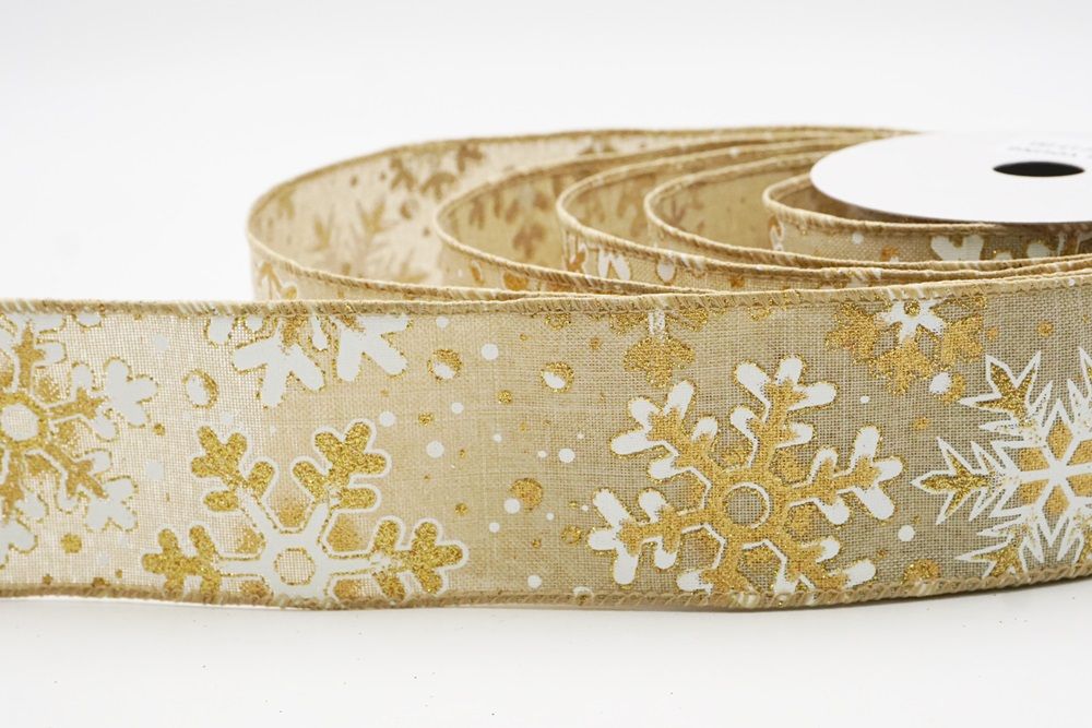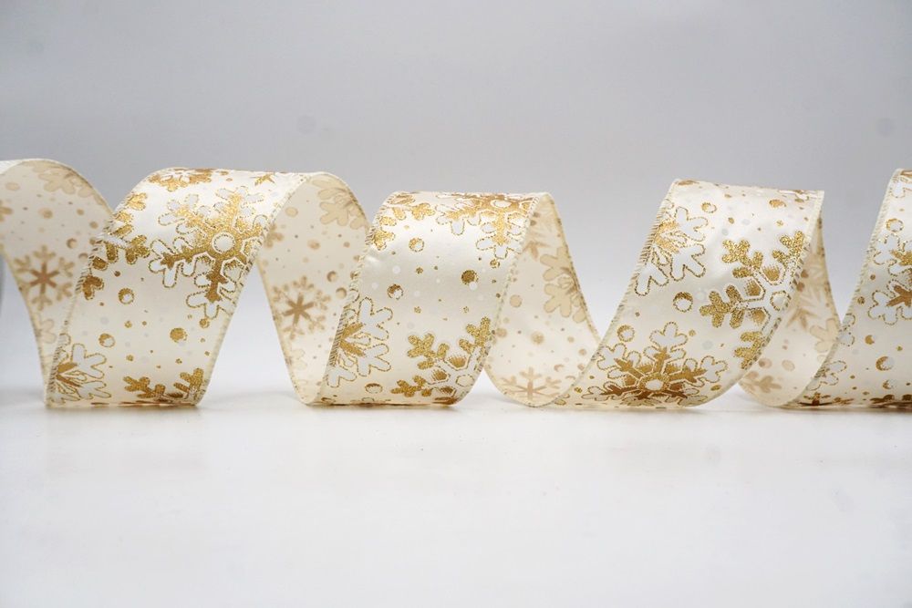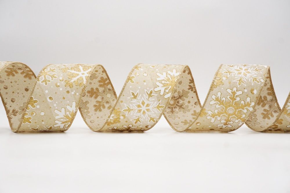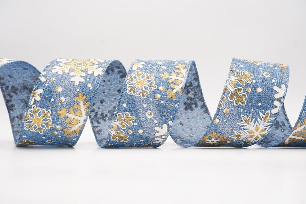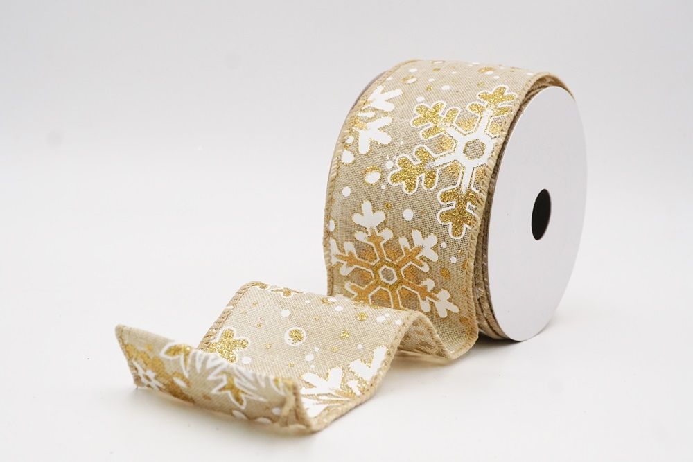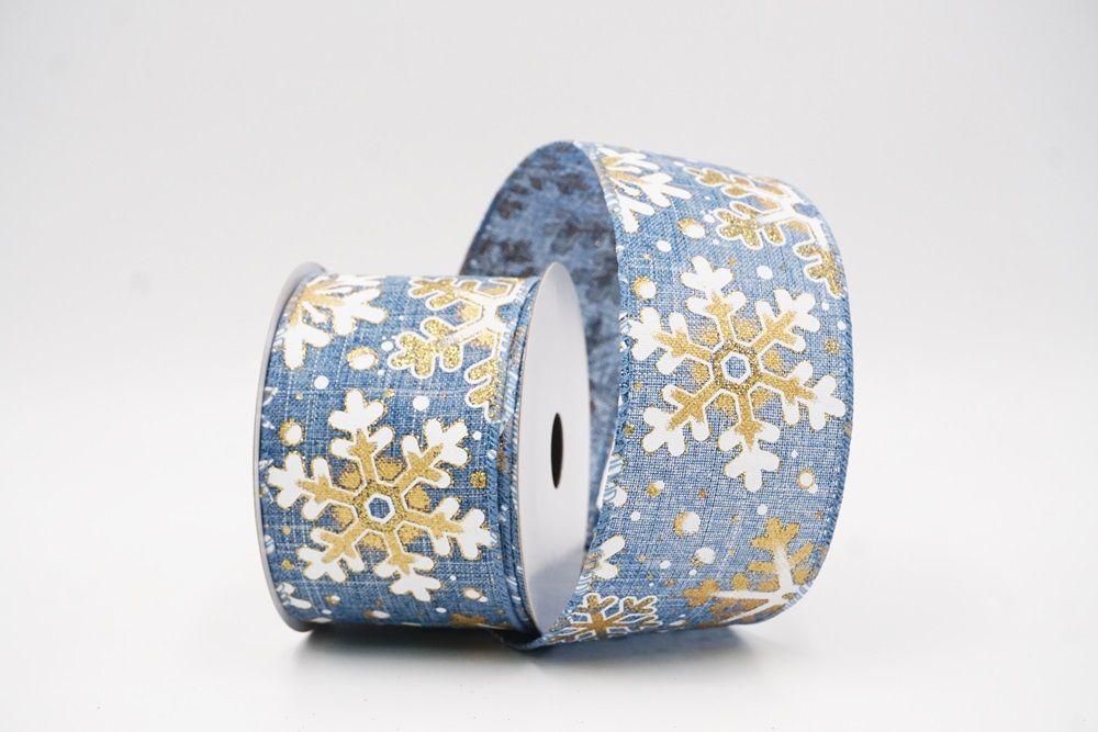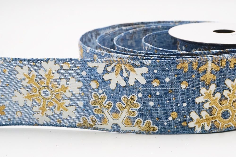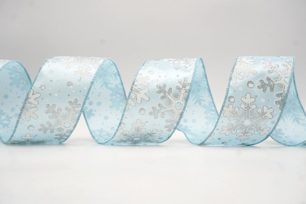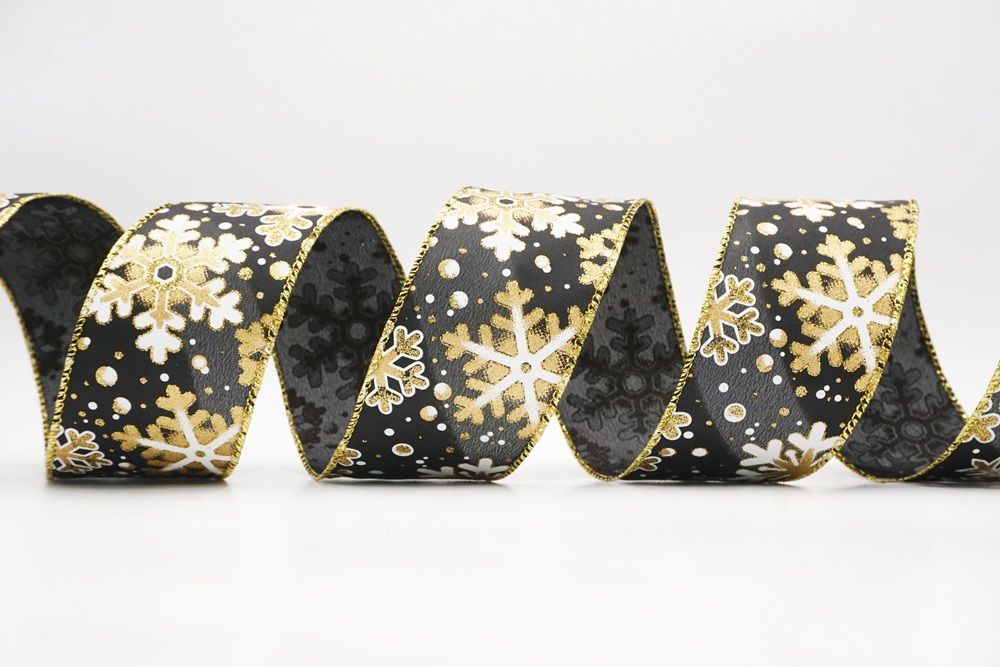 This collection includes 9 beautiful colors such as Black-White, Black-Gold, White, Cream, Blue, Red, Light Blue, Denim Blue, and Light Brown. With size options of 1 1/2" to 2 1/2" (38mm–68mm), the ribbon is versatile for wreaths, tree décor, crafting accents, and winter-themed displays. The glittered snowflake pattern adds dimension and charm, making every project shine.
