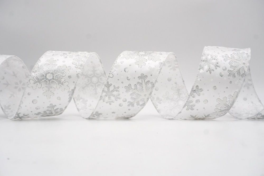 Festive Glitter Snowflakes Wired Ribbon