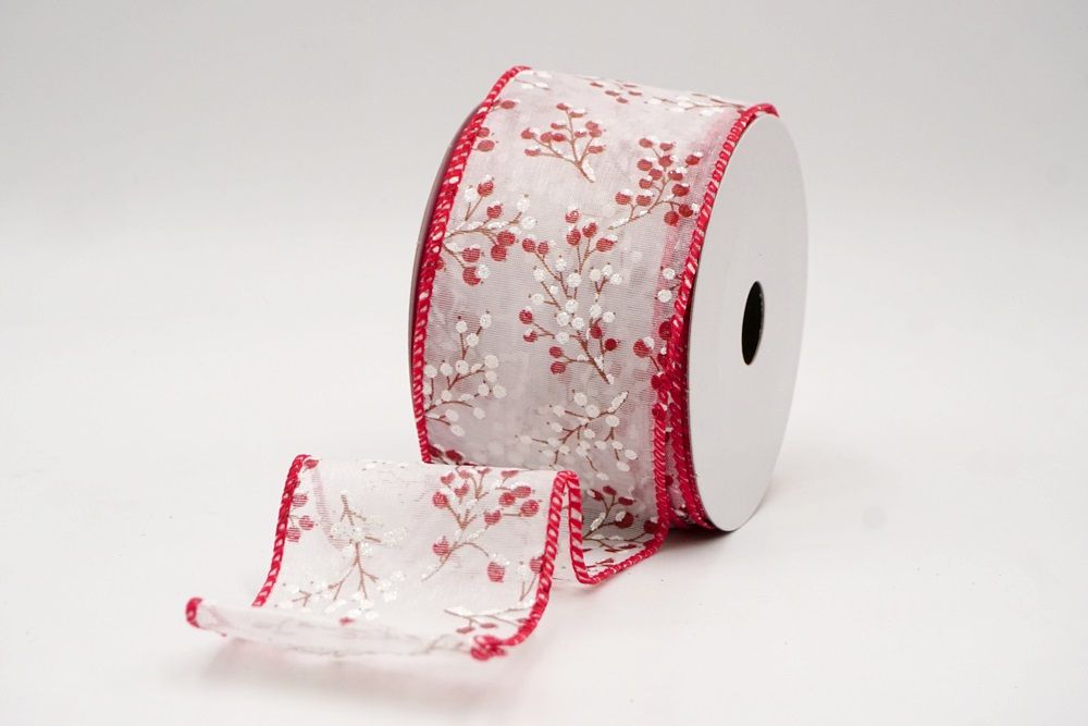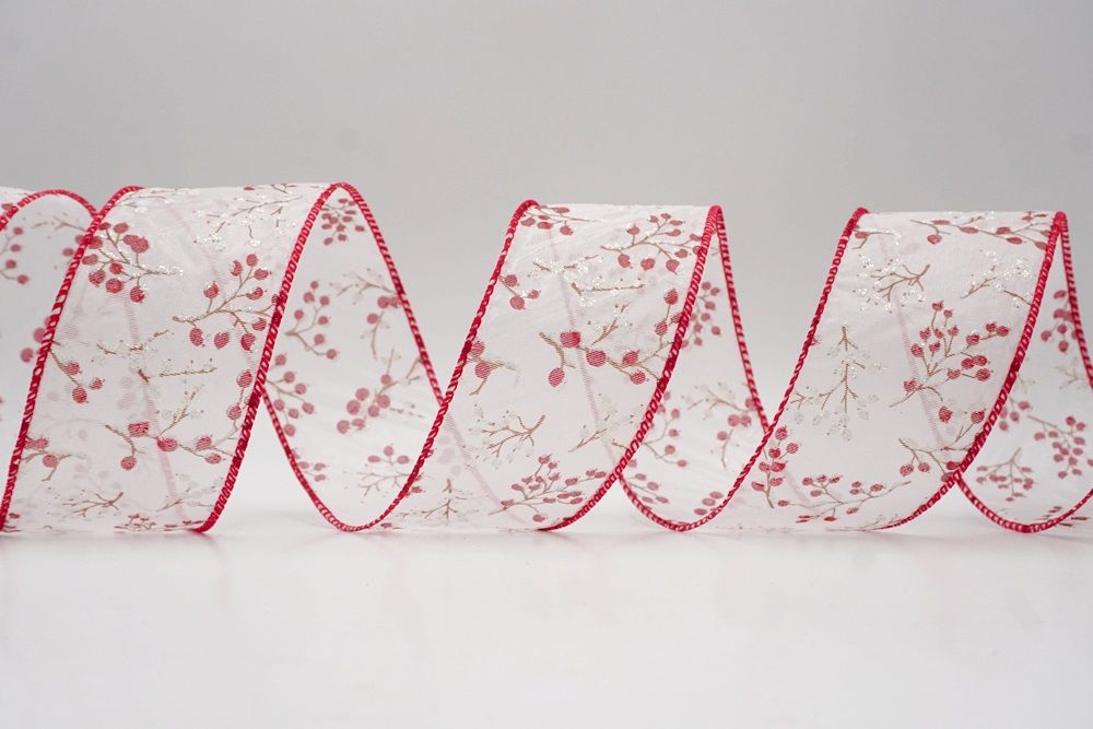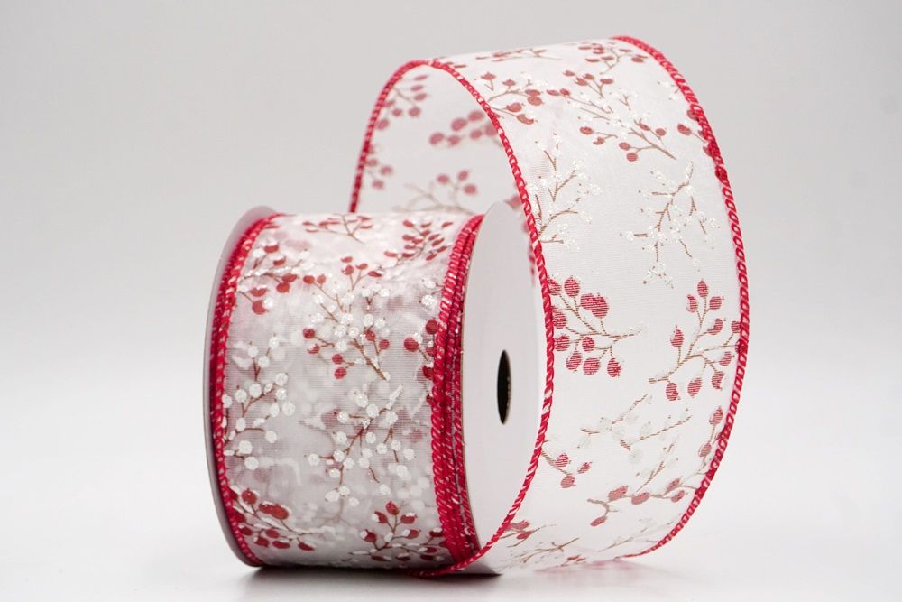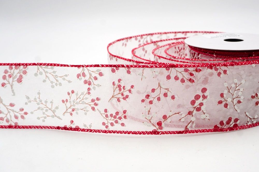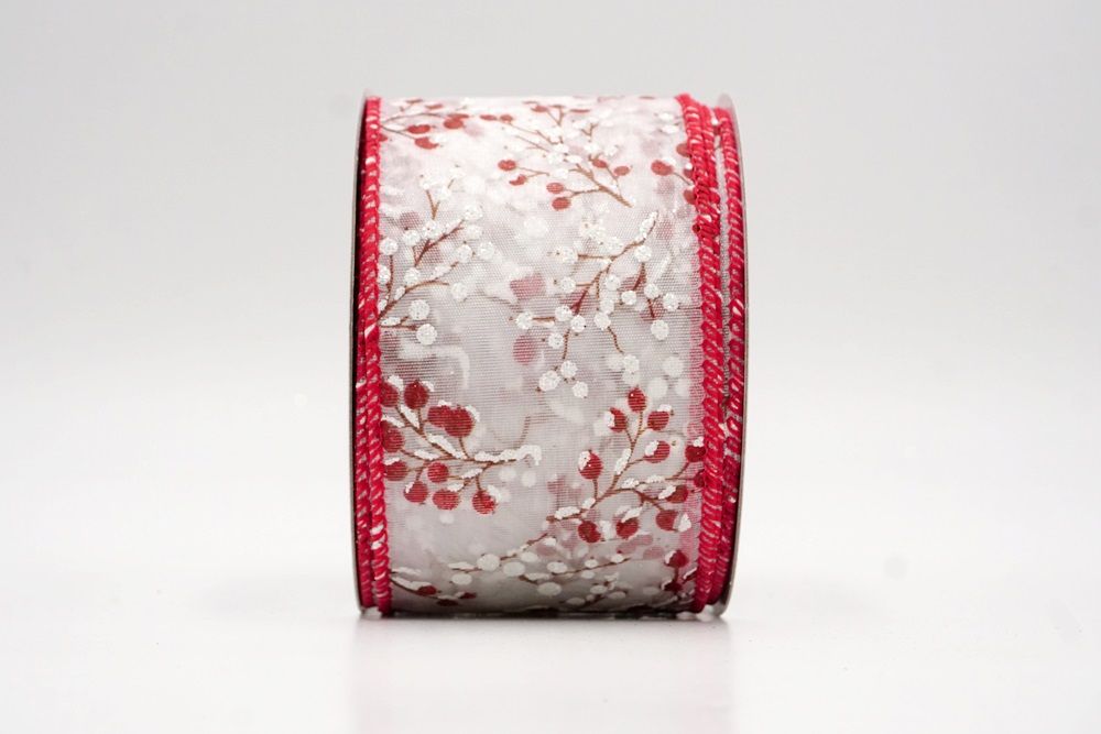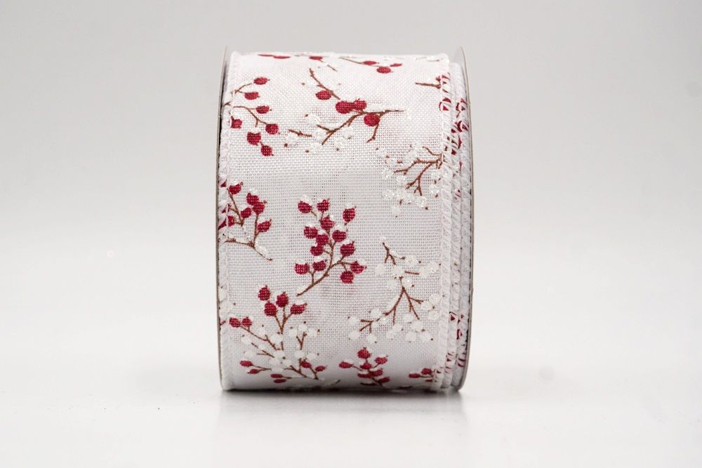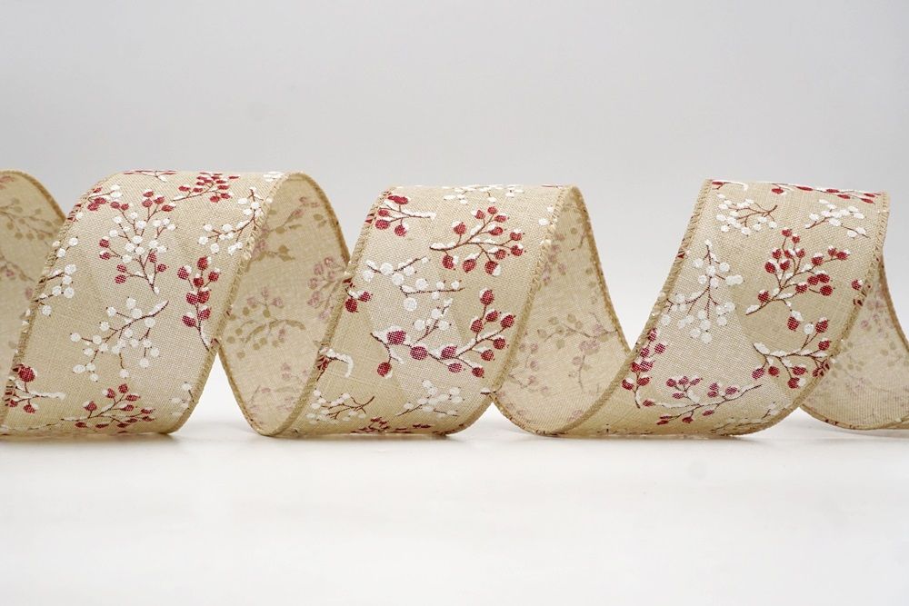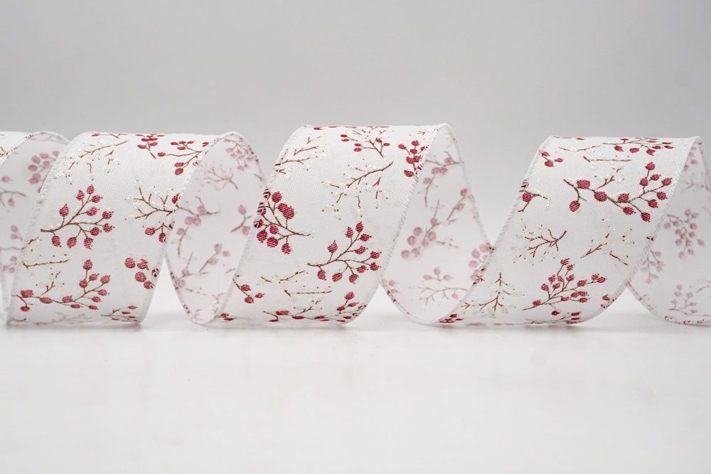 The design of this ribbon truly brings the beauty of a winter landscape indoors, making it absolutely perfect for Christmas. It features delicate branches adorned with clusters of rich red berries, often with a hint of "frost" or sparkling white accents that give it a magical, snow-kissed appearance. This imagery evokes the serene beauty of nature during the colder months, making it ideal for creating a warm and inviting holiday atmosphere. Imagine using it to create stunning Christmas wreaths that mimic frosted branches, or weaving it through your Christmas tree to add pops of festive color and natural charm. It’s also wonderful for enhancing garlands, tying around gifts for an elegant presentation, or simply adding a festive touch to any part of your home decor. The Frosted Berry Wired Ribbon beautifully combines rustic charm with delicate elegance, making it a versatile and beloved choice for celebrating the joy and beauty of the Christmas season.