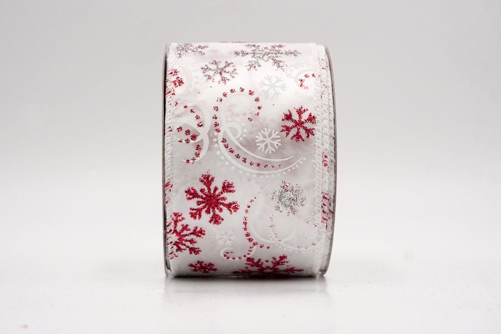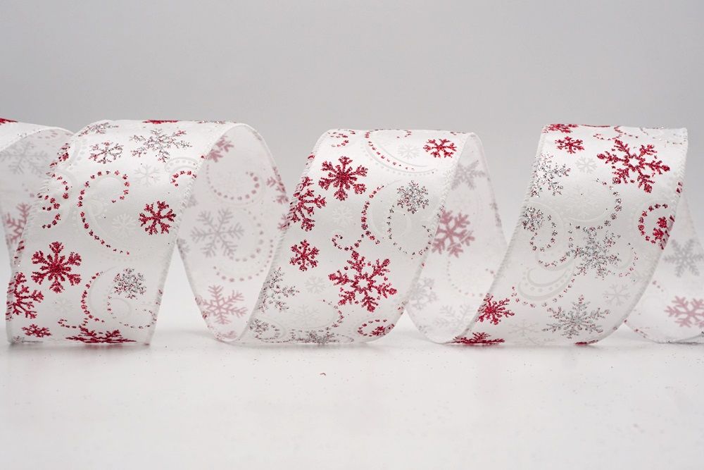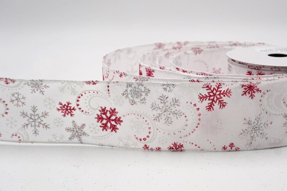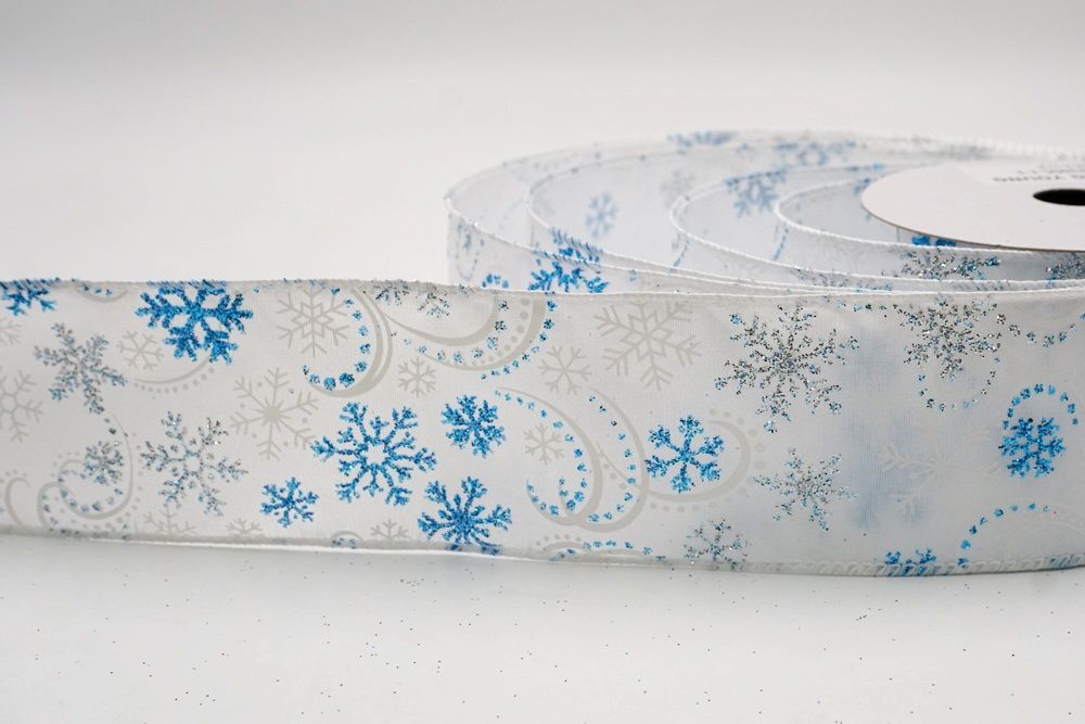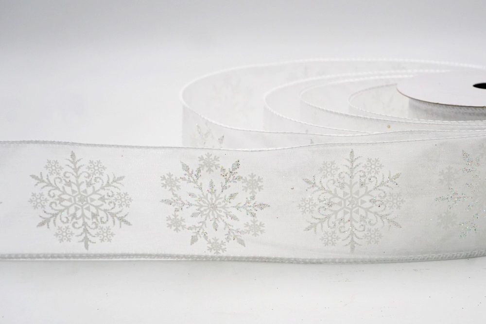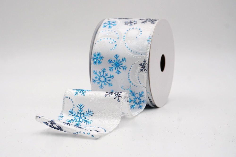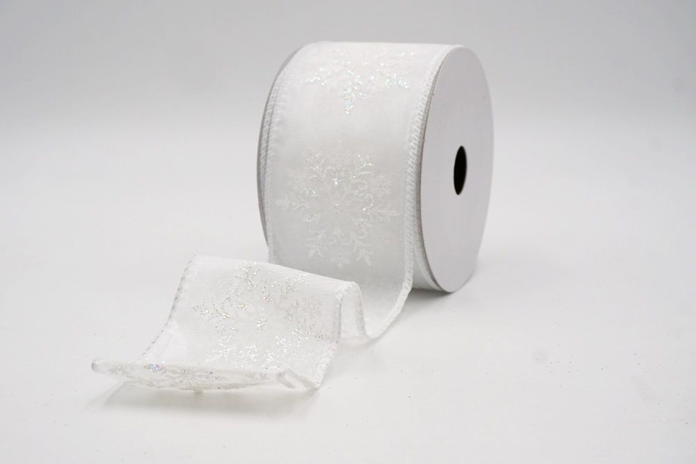 Glitter Snowflake & Swirl Wired Ribbon Wired Ribbon_KF9808