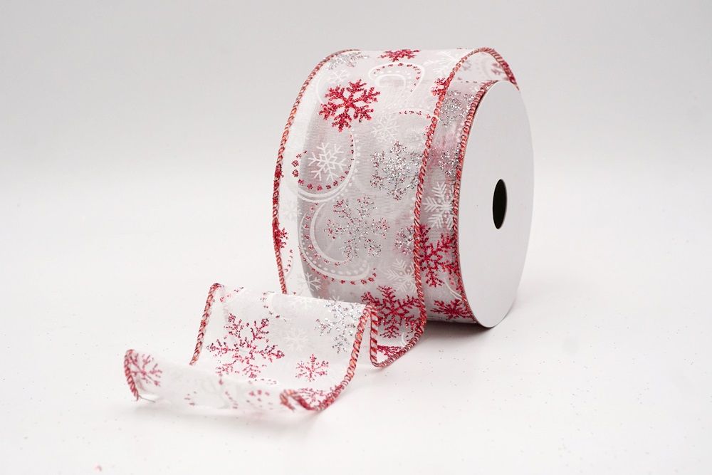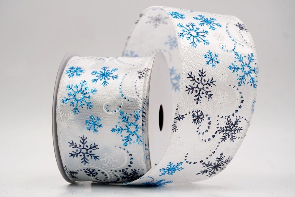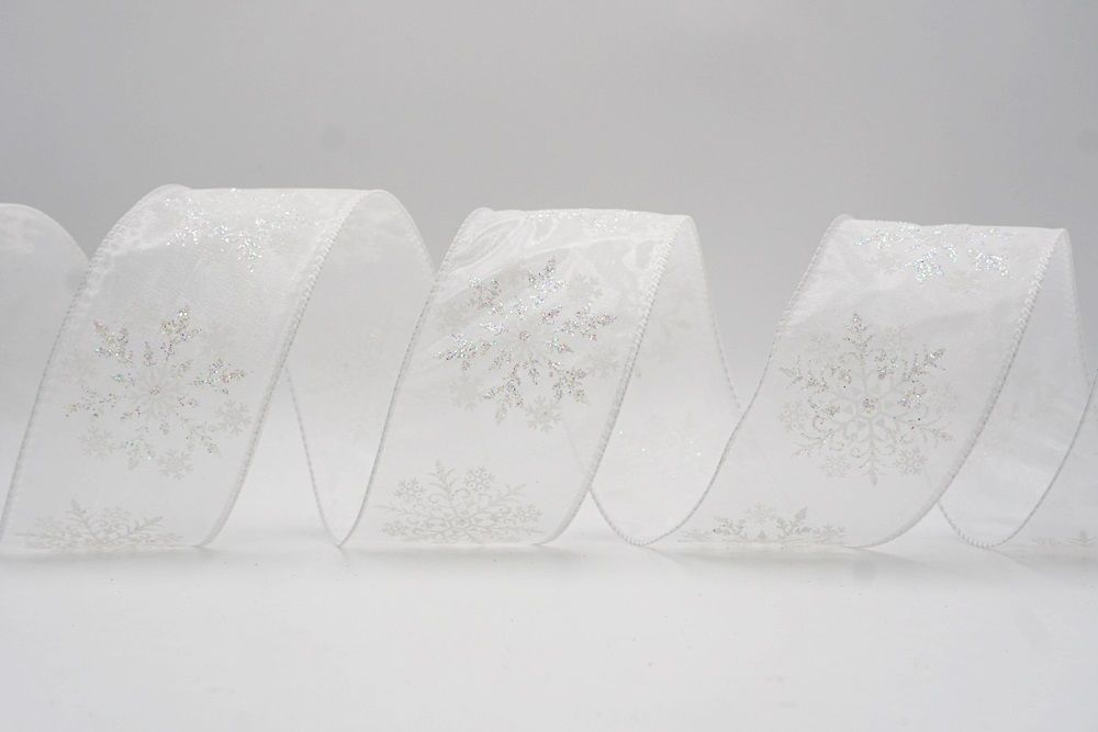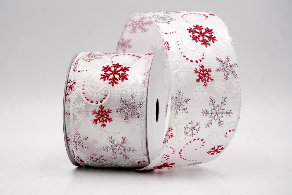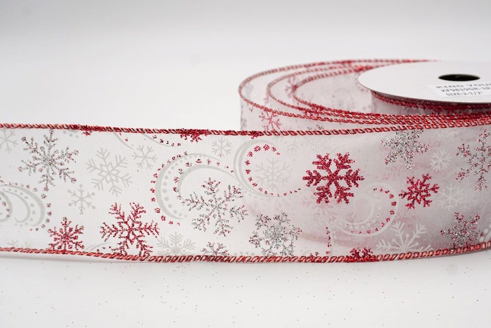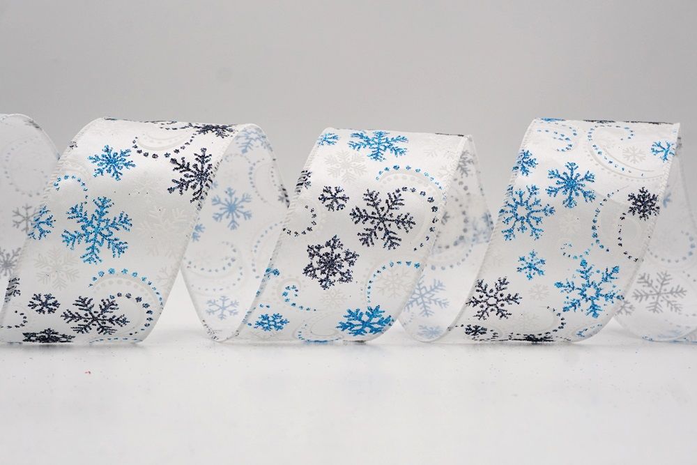 Glitter Snowflake & Swirl Wired Ribbon Wired Ribbon_KF9808