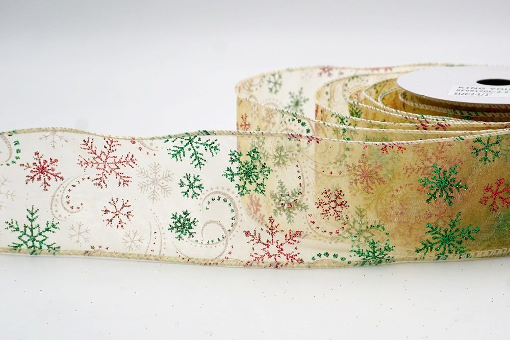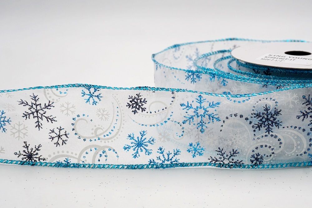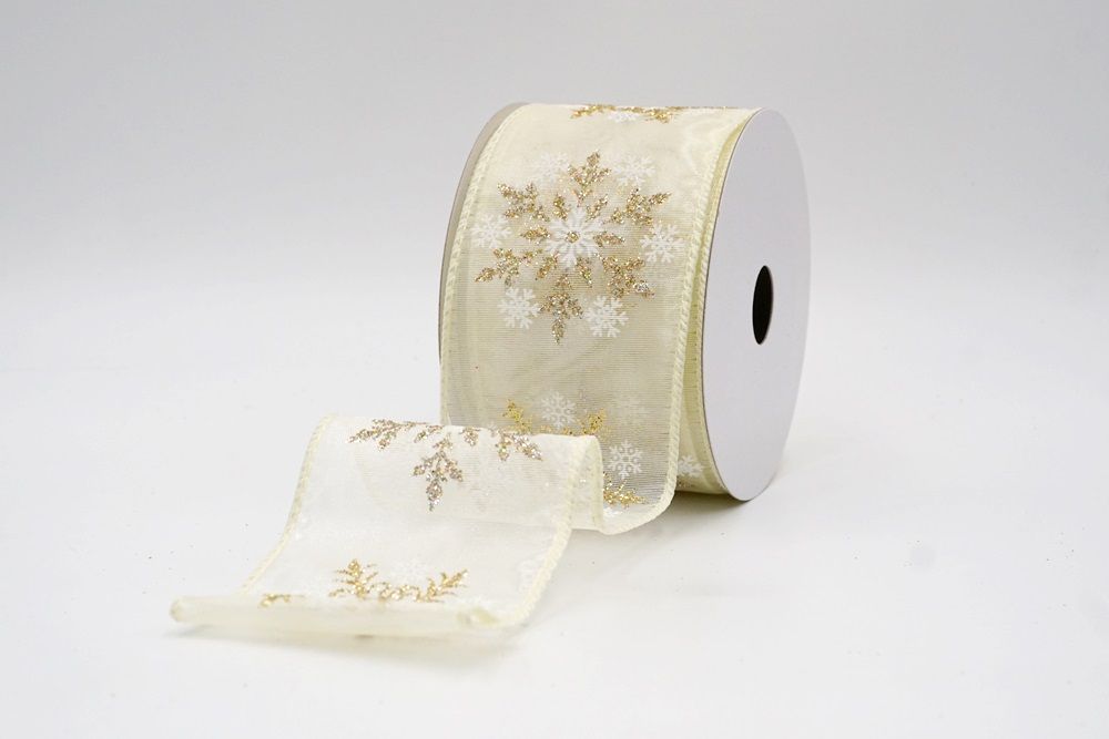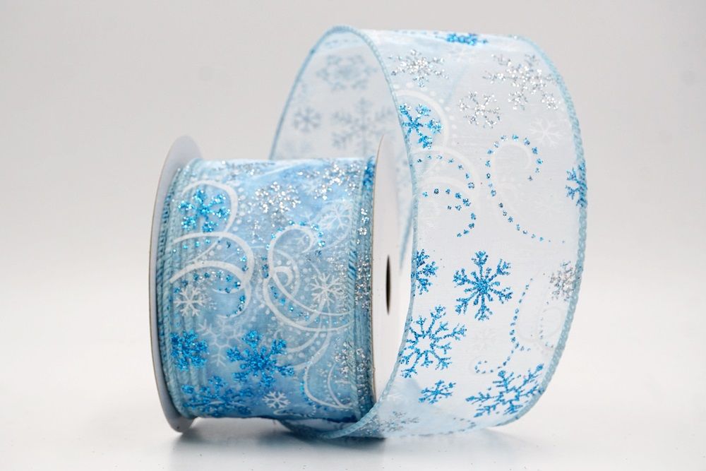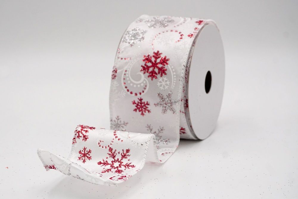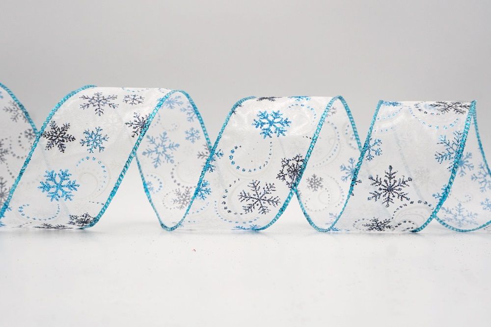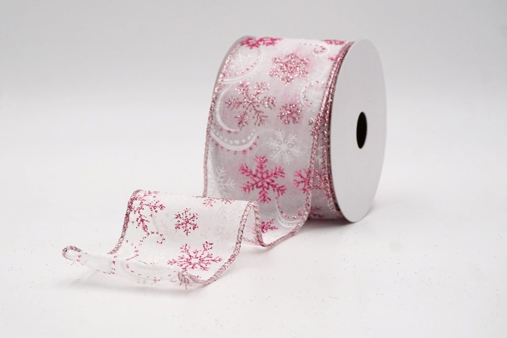 Glitter Snowflake & Swirl Wired Ribbon Wired Ribbon_KF9808