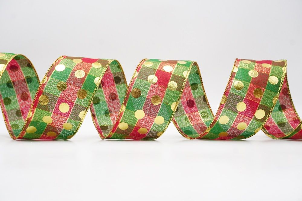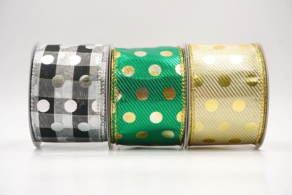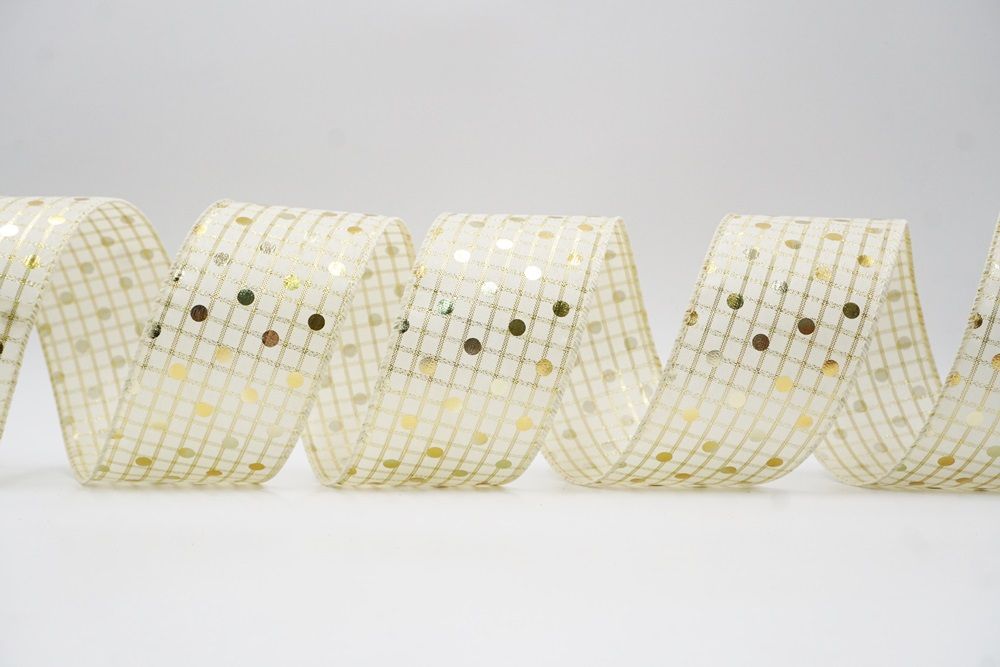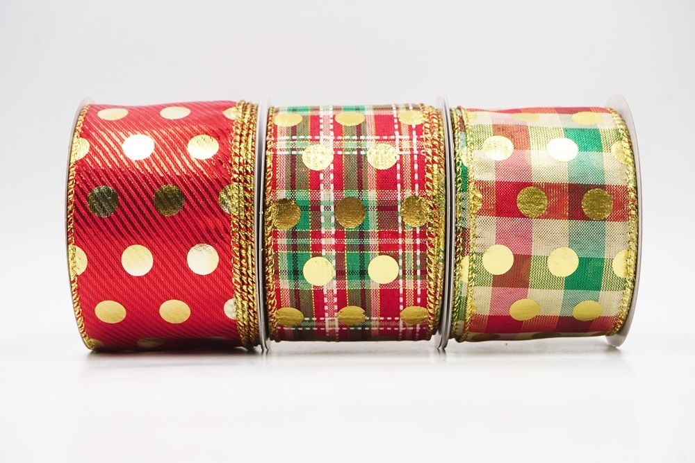 Gold Polka Dots Holiday Wired Ribbon_KF9783.KF9784
