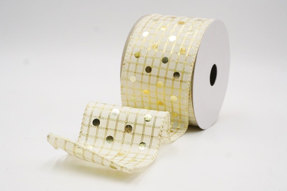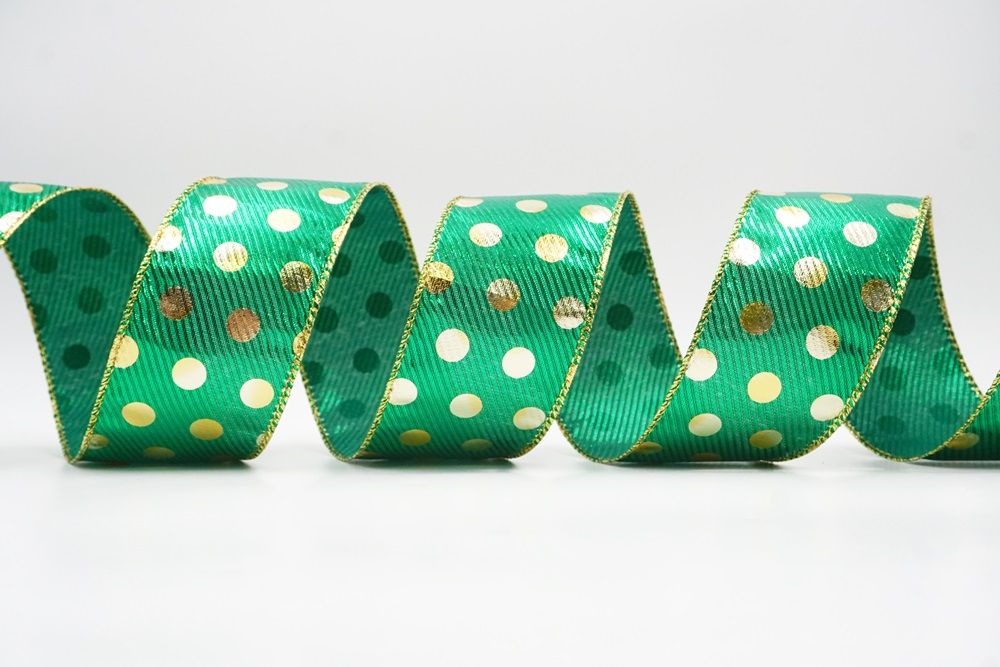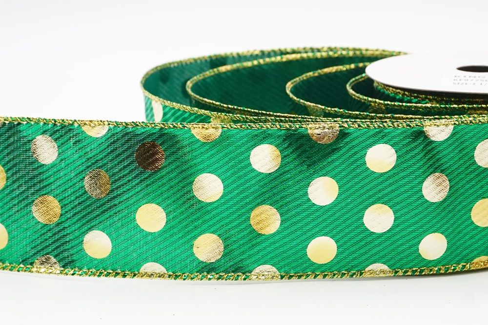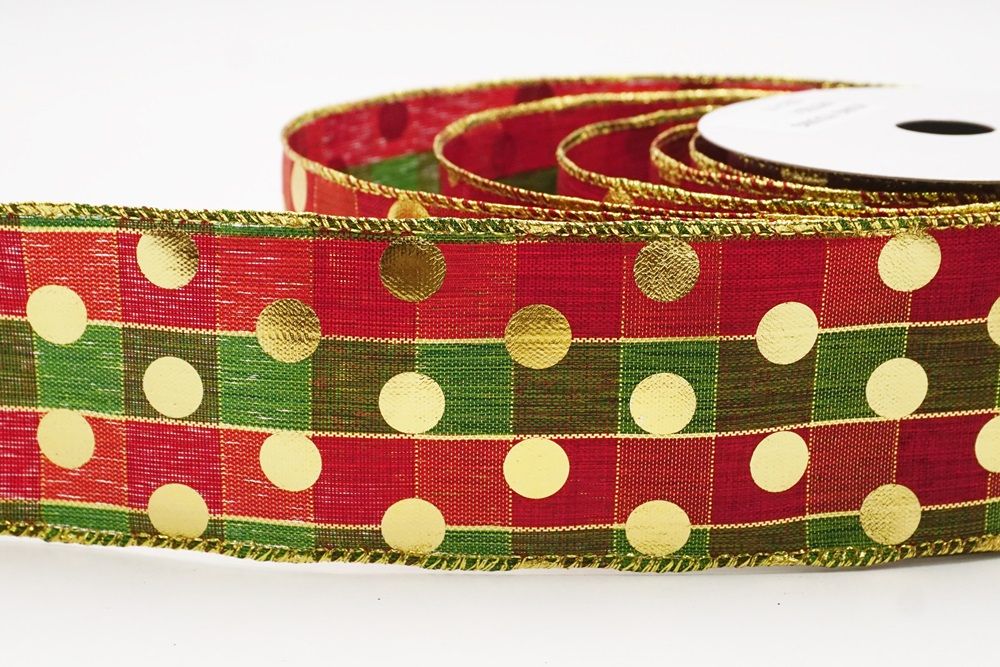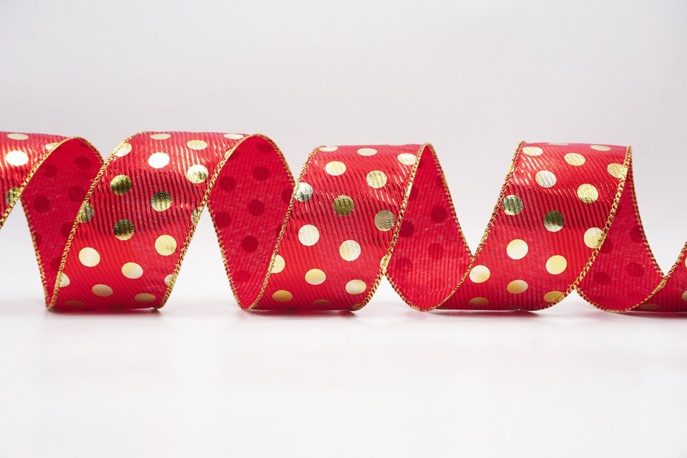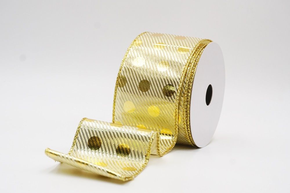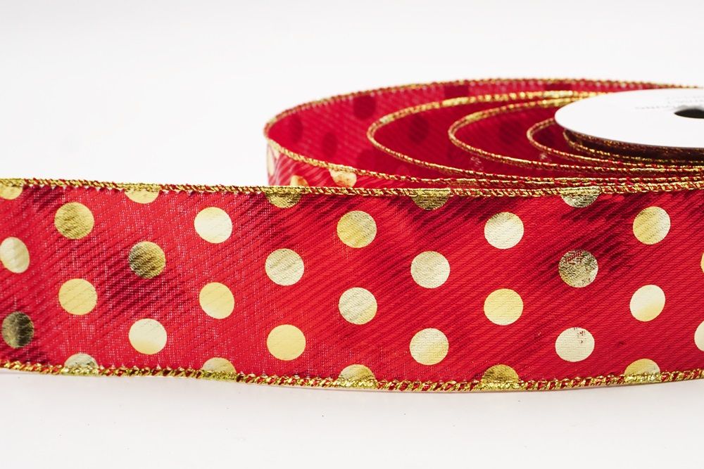 Gold Polka Dots Holiday Wired Ribbon_KF9774.KF9775.KF9776.KF9777.KF9778.KF9779.KF9780.KF9781.KF9782