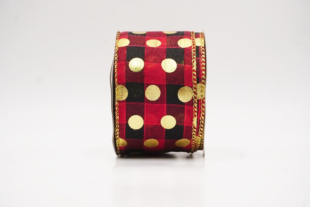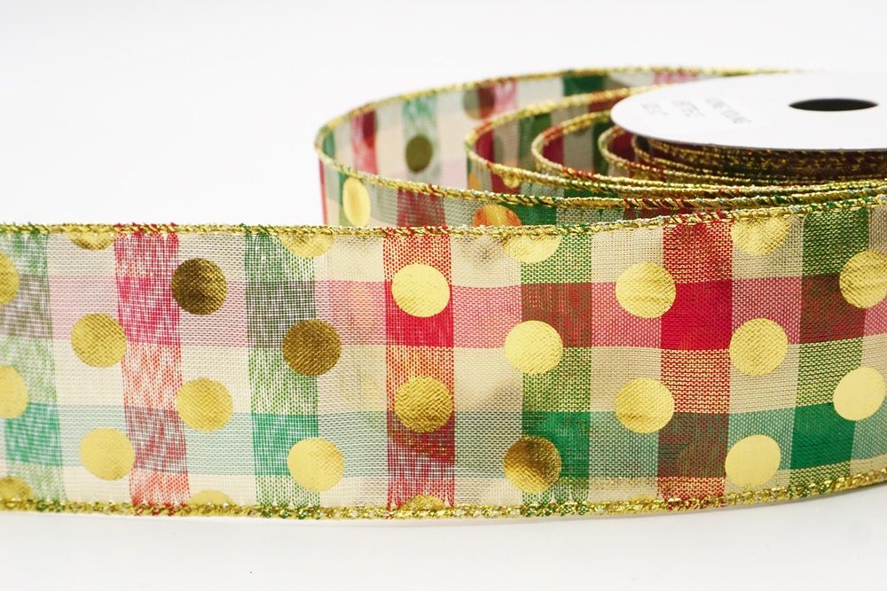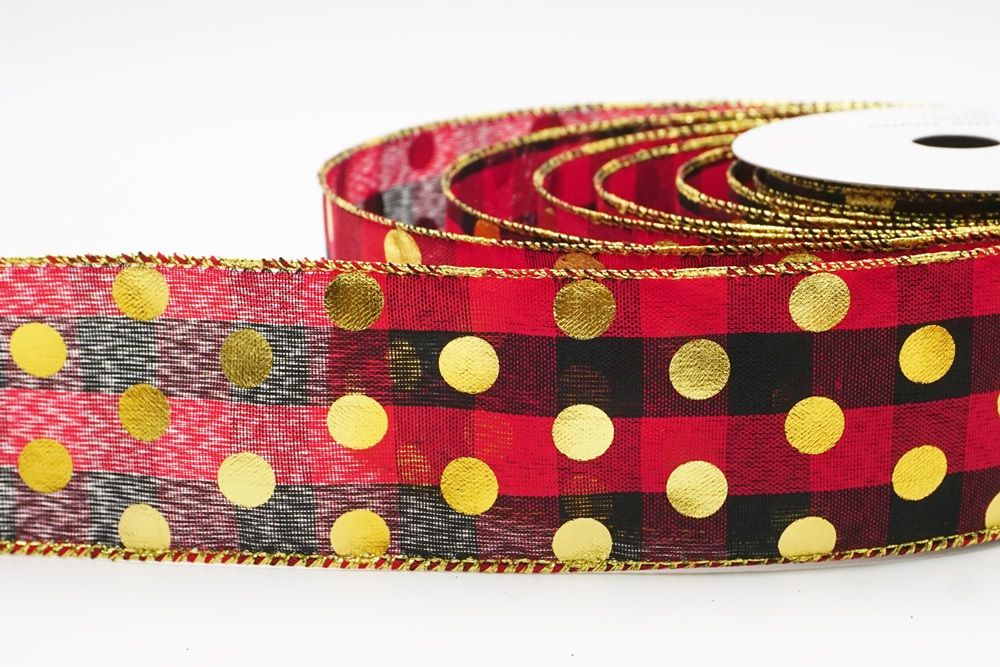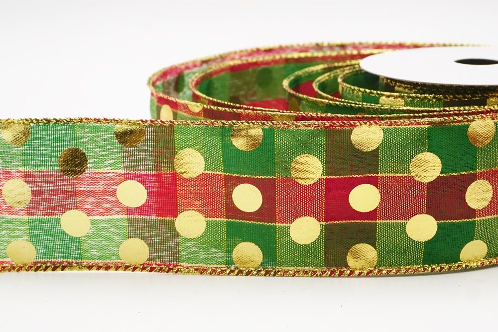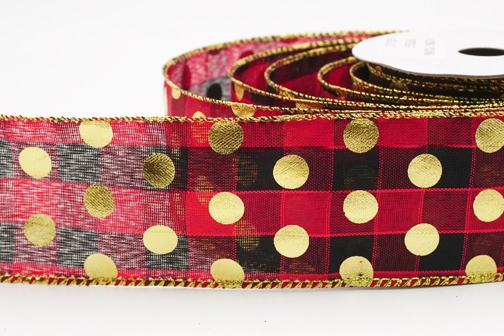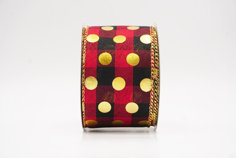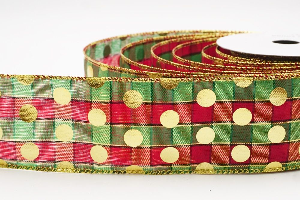 Gold Polka Dots Holiday Wired Ribbon_KF9774.KF9775.KF9776.KF9777.KF9778.KF9779.KF9780.KF9781.KF9782