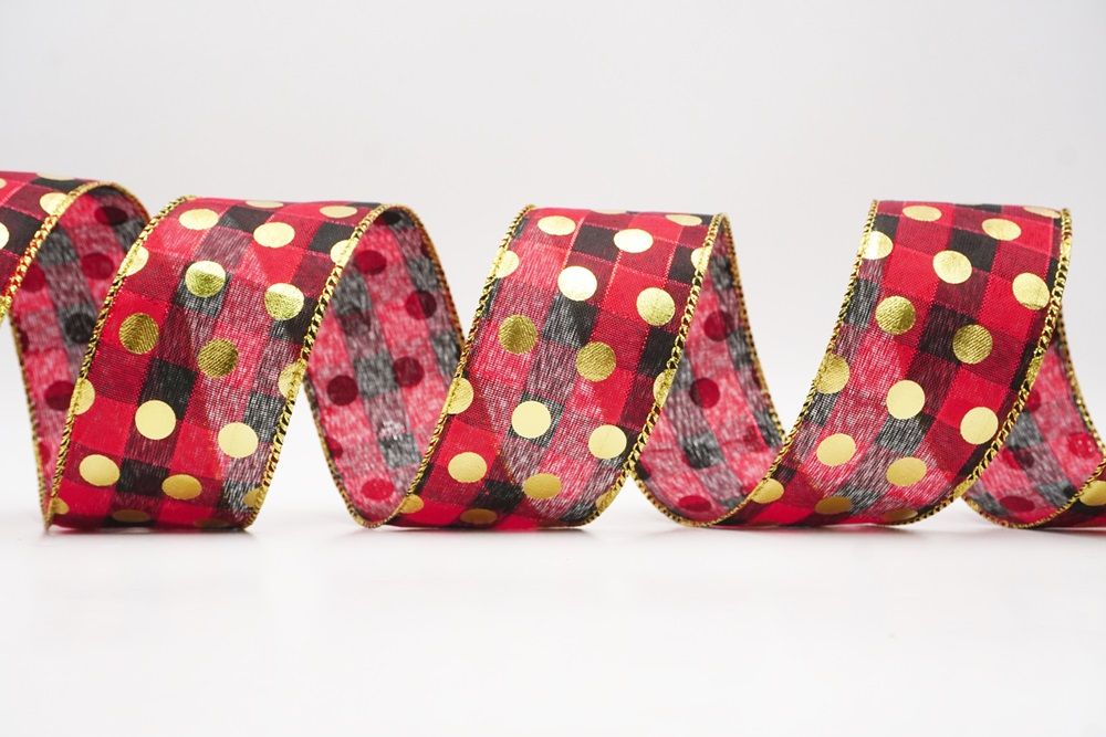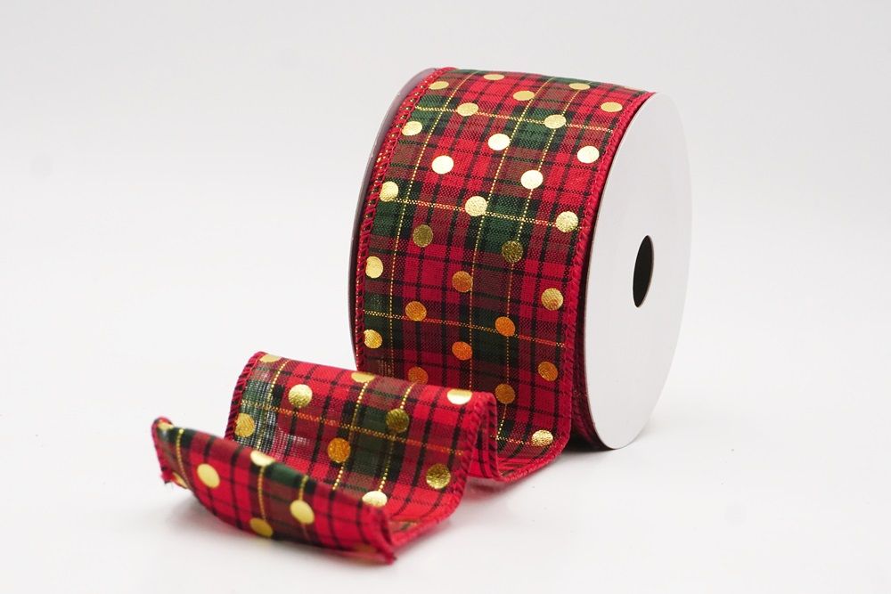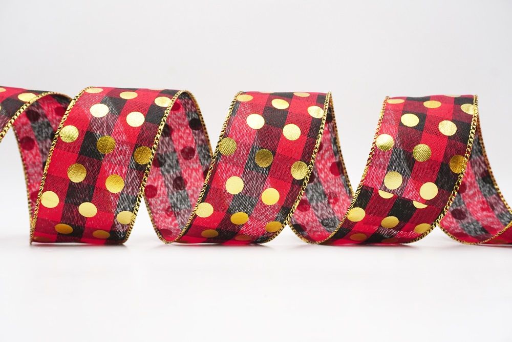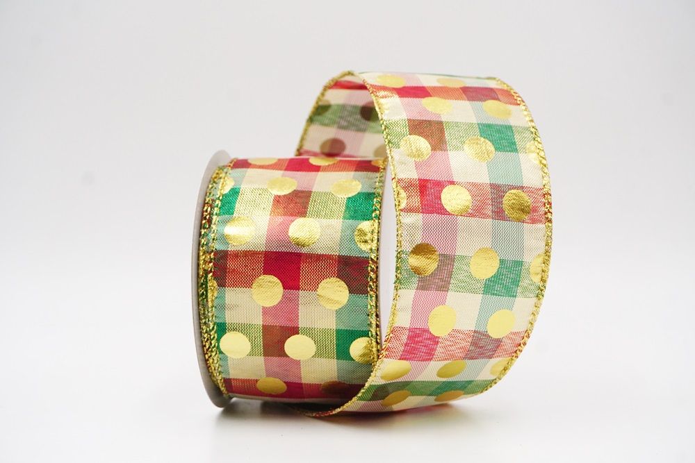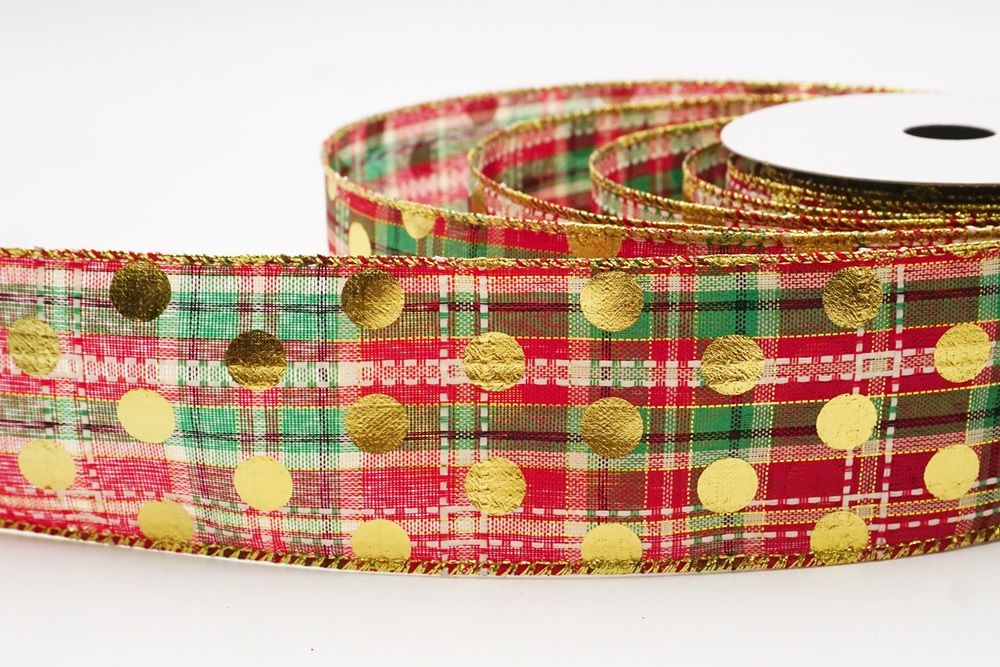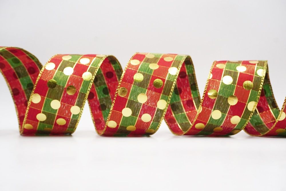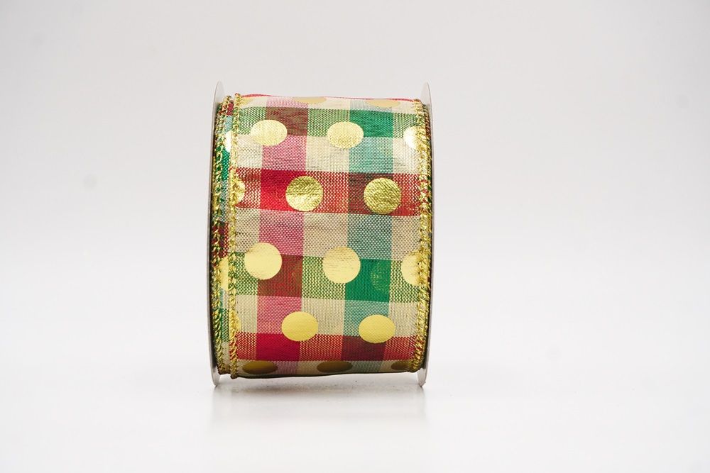 Gold Polka Dots Holiday Wired Ribbon_KF9774.KF9775.KF9776.KF9777.KF9778.KF9779.KF9780.KF9781.KF9782
